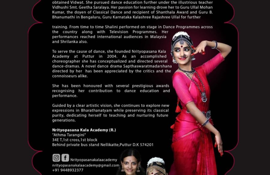 ಪುತ್ತೂರು: ಪುತ್ತೂರಿನ ನೃತ್ಯೋಪಾಸನಾ ಕಲಾ ಅಕಾಡೆಮಿ(ರಿ.) ಪ್ರಸ್ತುತಿಯಲ್ಲಿ ನೃತ್ಯಗುರು ಶಾಲಿನಿ ಆತ್ಮಭೂಷಣ್ ಶಿಷ್ಯೆ ಭಾರತಿ ಎಂ. ಇವರ ಭರತನಾಟ್ಯ ರಂಗಪ್ರವೇಶ ಫೆ.7 ರಂದು ಪುತ್ತೂರಿನ ಮಹತೋಭಾರ ಶ್ರೀಮಹಾಲಿಂಗೇಶ್ವರ ದೇವಸ್ಥಾನದ ದೇವರಮಾರು ಗದ್ದೆಯ ತೆರೆದ ರಂಗಸ್ಥಳದಲ್ಲಿ ಇದೇ ಮೊದಲ ಬಾರಿಗೆ ನಡೆಯಲಿದೆ. ಸಂಜೆ 5.45ಕ್ಕೆ ನಾಟ್ಯ ನಿಕೇತನ ಕೊಲ್ಯ ಇಲ್ಲಿನ ಕರ್ನಾಟಕ ಕಲಾಶ್ರೀ ಪುರಸ್ಕೃತ ಗುರು ರಾಜಶ್ರೀ ಉಳ್ಳಾಲ್ ದೀಪ ಪ್ರಜ್ವಲನೆ ನೆರವೇರಿಸಲಿದ್ದಾರೆ. ಬಳಿಕ