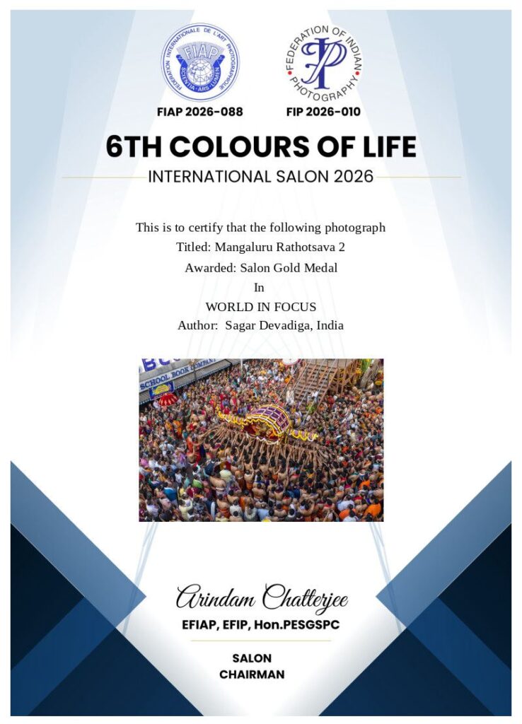 ‘6TH COLOURS OF LIFE’ INTERNATIONAL SALON 2026, Madhyamgram, Kolkata ಆಯೋಜಿಸಿದ ಅಂತಾರಾಷ್ಟ್ರೀಯ ಮಟ್ಟದ ಛಾಯಾಚಿತ್ರ ಸ್ಪರ್ಧೆಯಲ್ಲಿ SALON GOLD MEDAL ಪದಕವನ್ನು ಪಡೆದುಕೊಂಡಿದ್ದಾರೆ.