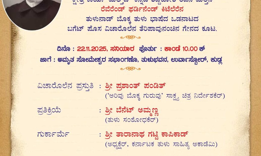 ಕಿಟೆಲರ ತುಳು ಒಡನಾಟ’ : ವಿಚಾರಗೋಷ್ಠಿ ಮತ್ತು ಸಾಕ್ಷ್ಯ ಚಿತ್ರ ಪ್ರದರ್ಶನ
