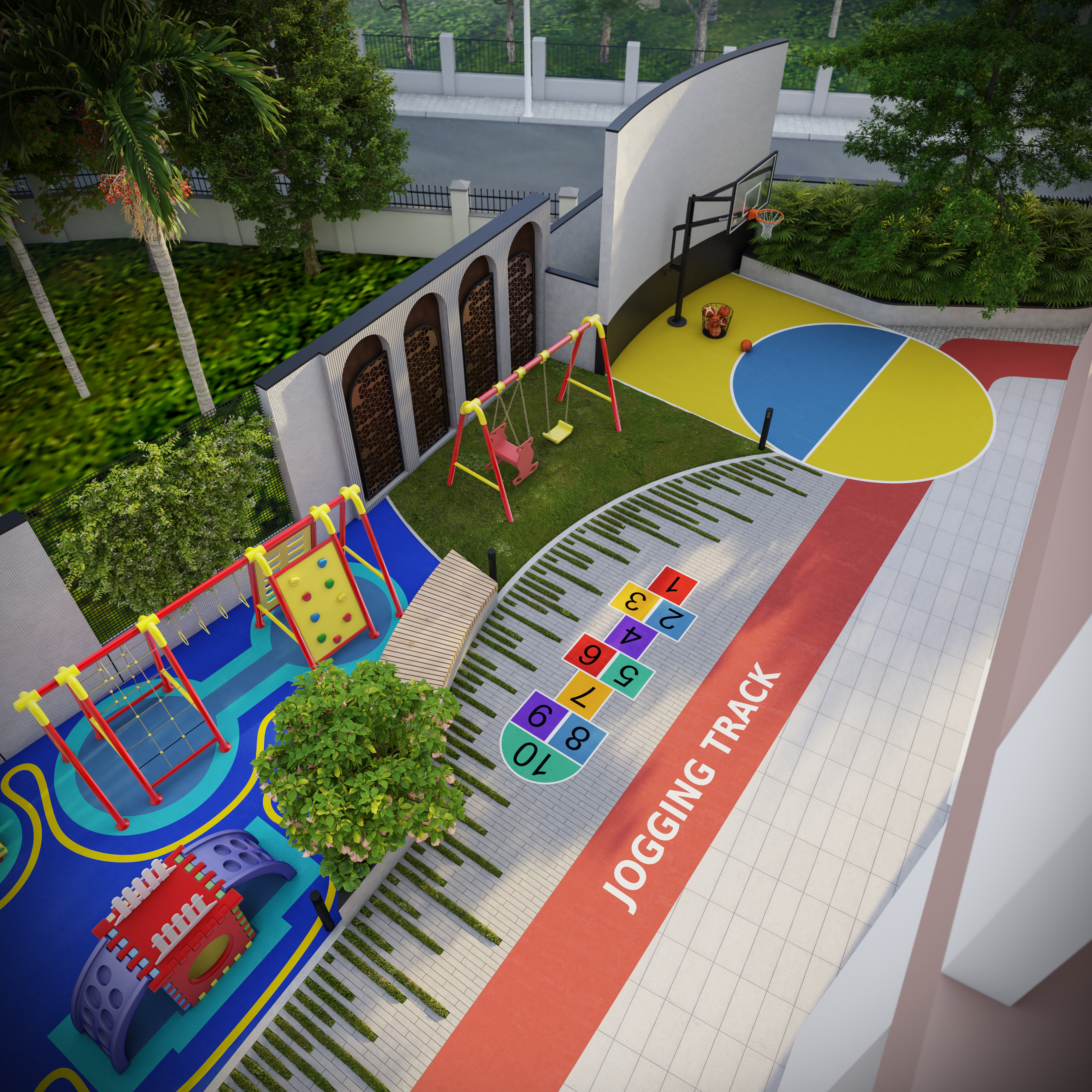 ಜಿಮ್ಮೇಶಿಯಂ, ಜಾಗಿಂಗ್ ಟ್ರಾಕ್ ಮತ್ತು ಕ್ರೀಡಾಂಗಣಗಳು