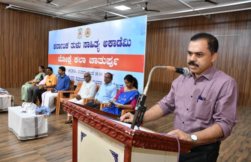 ಮಂಗಳೂರು : ವಿವಿಧ ಕಲಾ ಪ್ರಕಾರಗಳ ಮೂಲಕ ವಿದ್ಯಾರ್ಥಿಗಳಲ್ಲಿ ತುಳು ಭಾಷೆಯ ಬಗ್ಗೆ ಅಭಿರುಚಿ ಅಭಿಮಾನ ಮೂಡಿಸುವ ಕಾರ್ಯ ಶ್ಲಾಘನೀಯ ಎಂದು ಕೆ.ಎಸ್.ಆರ್ .ಟಿ.ಸಿ. ಮಂಗಳೂರು ವಿಭಾಗೀಯ ನಿಯಂತ್ರಾಣಾಧಿಕಾರಿ ರಾಜೇಶ್ ಶೆಟ್ಟಿ ಅವರು ಹೇಳಿದರು.ಕರ್ನಾಟಕ ತುಳು ಸಾಹಿತ್ಯ ಅಕಾಡೆಮಿಯು ಪ್ರೌಢಶಾಲಾ ವಿದ್ಯಾರ್ಥಿಗಳಿಗಾಗಿ ಮಂಗಳೂರಿನ ತುಳುಭವನದಲ್ಲಿ ಹಮ್ಮಿಕೊಂಡ ‘ಜೋಕ್ಲೆ ಕಲಾ ಚಾತುರ್ಪು’ ಕಾರ್ಯಕ್ರಮವನ್ನು ಉದ್ಘಾಟಿಸಿ ಅವರು ಮಾತನಾಡಿದರು. ಶಾಲಾ ಕಾಲೇಜು ಹಂತದಲ್ಲಿ ವಿವಿಧ