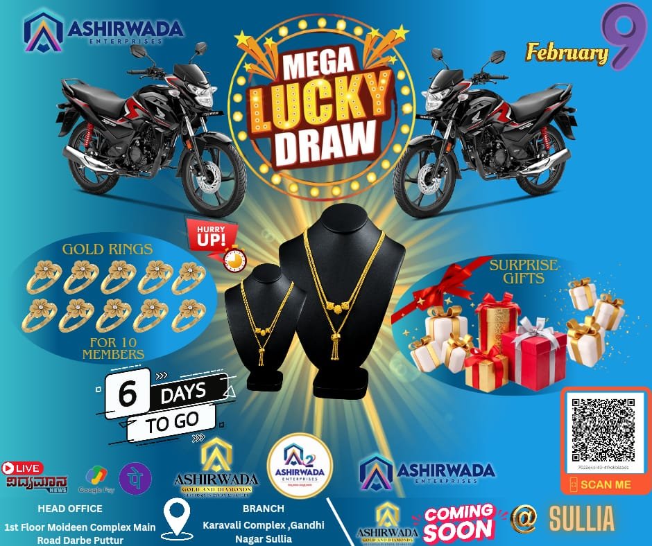 ಇದೆ ಉದ್ದೇಶಕ್ಕಾಗಿ ,ಸಾಮಾನ್ಯ ವ್ಯಕ್ತಿಯ ಕನಸು ನನಸಾಗಲು ಪುತ್ತೂರಿನ ಪ್ರತಿಷ್ಟಿತ ಸಂಸ್ಥೆಗಳಲ್ಲಿ ಒಂದಾದ ಆಶೀರ್ವಾದ ಸಂಸ್ಥೆಯು ಪ್ರತಿಯೊಬ್ಬ ಸಾಮಾನ್ಯ ವ್ಯಕ್ತಿಗೆ ಕೈಗೆಟಕುವ ದರದಲ್ಲಿ ಅದೃಷ್ಟ ಉಳಿತಾಯ ಯೋಜನೆ ಹಮ್ಮಿಕೊಂಡಿದ್ದು ಇದೀಗ ತನ್ನ 2 ನೆಯ ಸೀಸನ್ ನಲ್ಲಿ ಮೊದಲ ಹಂತದಲ್ಲಿ 400 ಕ್ಕಿಂತಲೂ ಹೆಚ್ಚು ಜನರಿಗೆ ಬಹುಮಾನ ನೀಡಿ ಪ್ರೋತ್ಸಾಹಿಸಿದೆ.2022ರಿಂದ ಶುರುವಾದ ಸಂಸ್ಥೆ ಈಗ ಸರಕಾರದ ಎಲ್ಲ ಪರವಾನಗಿಗಳನ್ನು ಪಡೆದು ಅಧಿಕೃತವಾಗಿ ಹೊರ ಹೊಮ್ಮಿದ ಈ ಸಂಸ್ಥೆ ಪುತ್ತೂರು ಮಾತ್ರವಲ್ಲದೆ ತನ್ನೆಲ್ಲ ಗ್ರಾಹಕ ಬಂದುಗಳಿಗೆ ಮತ್ತಷ್ಟು ಹತ್ತಿರವಾಗಲು ಸುಳ್ಯದಲ್ಲಿ ಕೂಡ 2 ನೆಯ ಬ್ರಾಂಚ್ ಶುರು ಮಾಡಿದೆ.