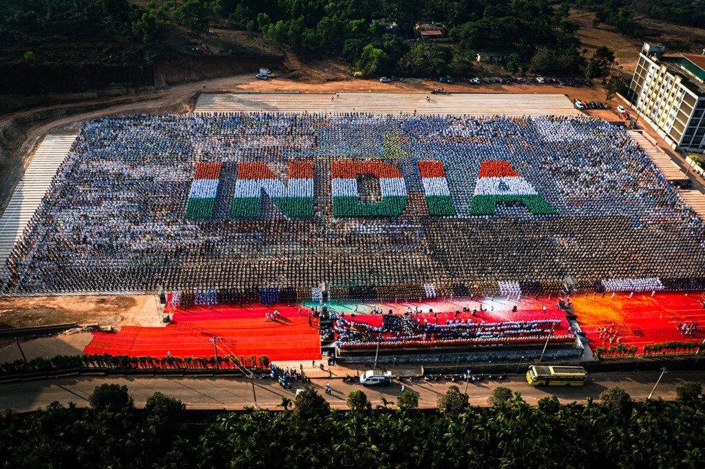 ತ್ರಿವರ್ಣದಲ್ಲಿ ಇಂಡಿಯಾ': ಪುತ್ತಿಗೆಪದವಿನ ವಿಶಾಲವಾದ ಬಯಲು ರಂಗ ಮಂದಿರದ ಎದುರು ಸಹಸ್ರಾರು ಮಂದಿ ವಿದ್ಯಾರ್ಥಿಗಳ ಮಧ್ಯೆ ತ್ರಿವರ್ಣದಲ್ಲಿಇಂಡಿಯಾ’ ಬರುವ ರೀತಿಯಲ್ಲಿ ವಿದ್ಯಾರ್ಥಿಗಳು ನಿಂತಿರುವುದು ಆಕರ್ಷಕವಾಗಿತ್ತು. ತಿರಂಗ ಬಣ್ಣದಿಂದ 450 ವಿದ್ಯಾರ್ಥಿಗಳು ದೇಶದ ಸಾರ್ವಭೌಮತ್ವವನ್ನು ಪ್ರತಿನಿಧಿಸುತ್ತಿದ್ದರೆ, 4,003 ವಿದ್ಯಾರ್ಥಿಗಳು ತಿರಂಗದಲ್ಲಿ ಇಂಡಿಯಾ' ರಚಿಸಿ ವಿವಿಧತೆಯಲ್ಲಿ ಏಕತೆಯ ಸಂದೇಶ ರವಾನಿಸಿದರು. ದೇಶಪ್ರೇಮವನ್ನು ಸಾರುವ ಸಾಂಸ್ಕೃತಿಕ ಕಾರ್ಯಕ್ರಮಗಳು ಮನರಂಜಿಸಿತು. ಪುಟಾಣಿಗಳಿಂದ ಹಿಡಿದು ಗಣ್ಯರ ಕೈಯಲ್ಲಿ ಹಾರಾಡಿದ ಧ್ವಜ, ಬ್ಯಾಂಡ್ ಸೆಟ್ನಲ್ಲಿ ಮೊಳಗಿದ ಸಂಗೀತ, ವಿದ್ಯಾರ್ಥಿಗಳ ಗಾಯನದಲ್ಲಿ ದೇಶಪ್ರೇಮವು ಮೇಳೈಸಿತ್ತು.ವಂದೇ ಮಾತರಂ’ ಬಳಿಕ `ಕೋಟಿ ಕಂಠ’ ಹಾಡಿನ ನಿನಾದವನ್ನು ಸೇರಿದ್ದ ವಿದ್ಯಾರ್ಥಿಗಳು ಹಾಗೂ ಗಣ್ಯರ ಸಹಸ್ರಾರು ತ್ರಿವರ್ಣ ಧ್ವಜಗಳ ಅಲೆ ರಂಗೇರಿಸಿತು.