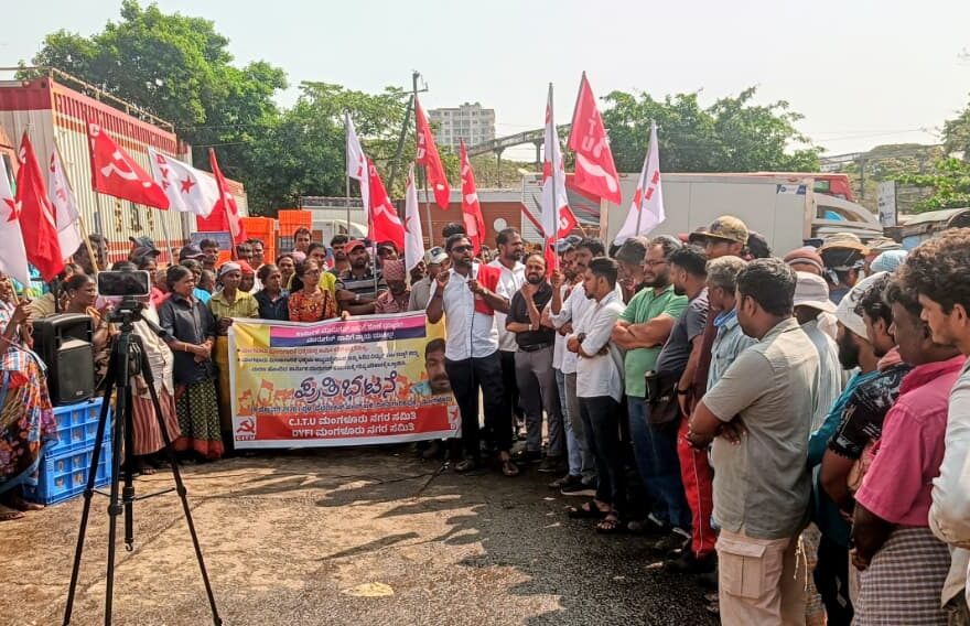 ಮಂಗಳೂರು ಮೀನುಗಾರಿಕಾ ದಕ್ಕೆ ಪ್ರದೇಶದಲ್ಲಿ ದುಡಿಯುತ್ತಿದ್ದ ವೇಳೆಯಲ್ಲಿ ತುಕ್ಕು ಹಿಡಿದ ದಾರಿದೀಪದ ಕಂಬವೊಂದು ಬಿದ್ದಿದ್ದರ ಪರಿಣಾಮವಾಗಿ ತಮಿಳುನಾಡು ಮೂಲದ ಕಾರ್ಮಿಕ ಮುರುಗನ್ ರವರು ಸ್ಥಳದಲ್ಲೇ ಮೃತಪಟ್ಟಿದ್ದು,ಈ ಸಾವಿಗೆ ಕಾರಣರಾದವರ ವಿರುದ್ದ ಕಠಿಣ ಕ್ರಮಕ್ಕೆ ಆಗ್ರಹಿಸಿ ಹಾಗೂ ಈ ಸಾವಿಗೆ ನ್ಯಾಯ ದೊರಕಿಸಿಕೊಡಬೇಕು,ಮೃತರಾದ ಮುರುಗನ್ ಕುಟುಂಬಕ್ಕೆ ರೂ.25 ಲಕ್ಷದಷ್ಟು ಪರಿಹಾರ ನೀಡಬೇಕೆಂದು ಒತ್ತಾಯಿಸಿ ಕೇಂದ್ರ ಕಾರ್ಮಿಕ ಸಂಘಟನೆ CITU ಹಾಗೂ ಯುವಜನ ಸಂಘಟನೆ