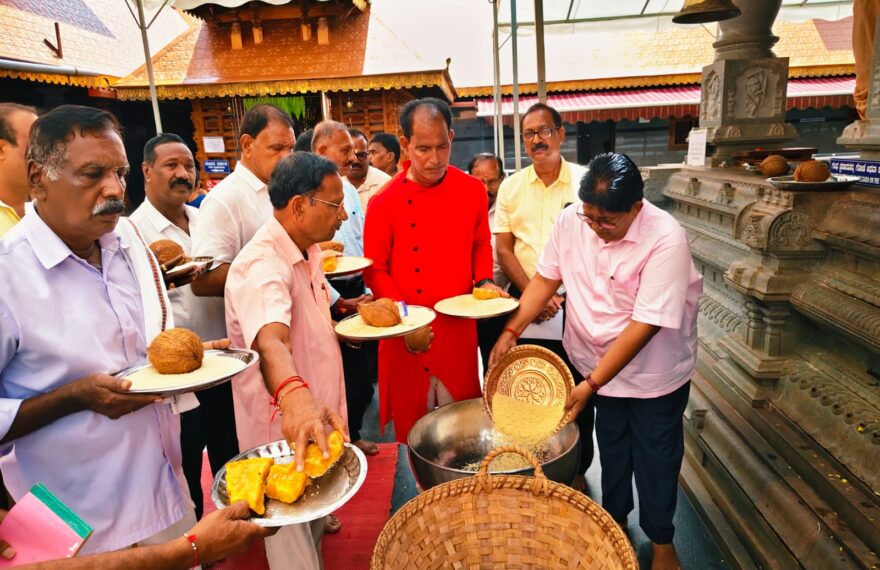 ಉಚ್ಚಿಲ:ಶ್ರೀ ಕ್ಷೇತ್ರ ಉಚ್ಚಿಲ ಶ್ರೀ ಮಹಾಲಕ್ಷ್ಮೀ ದೇವಾಲಯದಲ್ಲಿ ಇಂದು ಮುಷ್ಠಿ ಅಕ್ಕಿ ಕಾಣಿಕೆ ಸೇವೆ”ಗೆ ನಾಡೋಜ ಡಾ. ಜಿ. ಶಂಕರ್ ರವರು ಚಾಲನೆ ನೀಡಿದರು. ಶ್ರೀ ಮಹಾಲಕ್ಷ್ಮೀ ದೇವಾಲಯದಲ್ಲಿನಡೆಯುತ್ತಿರುವ ನಿತ್ಯ ಅನ್ನದಾನ ಸೇವೆ ನಿರಂತರವಾಗಿ ನಡೆಯಬೇಕೆನ್ನುವ ಸದುದ್ದೇಶದಿಂದ, ಆ ಸೇವೆಗೆ ಸಂಪನ್ಮೂಲಗಳನ್ನು ಕ್ರೋಢೀಕರಿಸುವ “ಮುಷ್ಠಿ ಅಕ್ಕಿ ಕಾಣಿಕೆ ಸೇವೆ”ಗೆ ತುಲಾ ಸಂಕ್ರಮಣದ ಶುಭ ದಿನವಾದ ಇಂದು (17.10.2025, ಶುಕ್ರವಾರ) ನಾಡೋಜ ಡಾ. ಜಿ. ಶಂಕರ್ ರವರು ಚಾಲನೆ