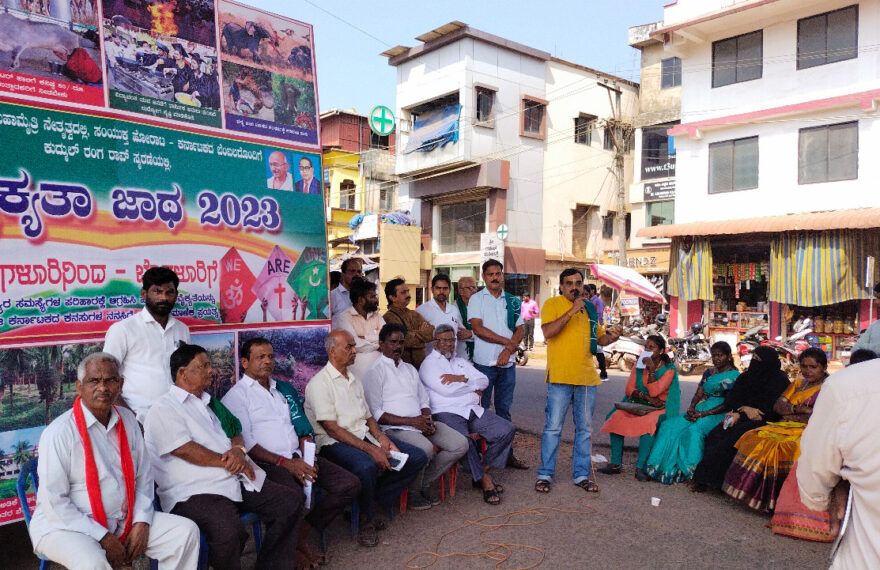 ಬಂಟ್ವಾಳ: ಕೇಂದ್ರ ಹಾಗೂ ರಾಜ್ಯ ಸರಕಾರಗಳು ಜನವಿರೋಧಿ ಧೋರಣೆಯಿಂದ ರೈತರು ಹಾಗೂ ಬಡಜನರ ಬದುಕು ಸಂಕಷ್ಟದಲ್ಲಿದ್ದು, ಒಗ್ಗಟ್ಟಾಗಿ ಎದುರಿಸಲಿದ್ದು ಶಕ್ತಿ ಪ್ರದರ್ಶನ ಮಾಡಲಿದ್ದೇವೆ ಎಂದು ಕರ್ನಾಟಕ ರಾಜ್ಯ ರೈತ ಸಂಘದ ಪ್ರಧಾನ ಕಾರ್ಯದರ್ಶಿ ರವಿಕಿರಣ್ ಪುಣಚ ಹೇಳಿದ್ದಾರೆ. ಜನಾಂದೋಲನಗಳ ಮಹಾಮೈತ್ರಿ ನೇತೃತ್ವದಲ್ಲಿ ಸಂಯುಕ್ತ ಹೋರಾಟ ಕರ್ನಾಟಕದ ಸಹಕಾರದೊಂದಿಗೆ ಮಂಗಳೂರಿನಿಂದ ಆರಂಭಗೊಂಡು ಬೆಂಗಳೂರಿಗೆ ಸಾಗುವ ಭಾವೈಕ್ಯತಾ ಜಾಥ ಶನಿವಾರ ಬೆಳಗ್ಗೆ ಬಿ.ಸಿ.ರೋಡ್ ಗೆ
