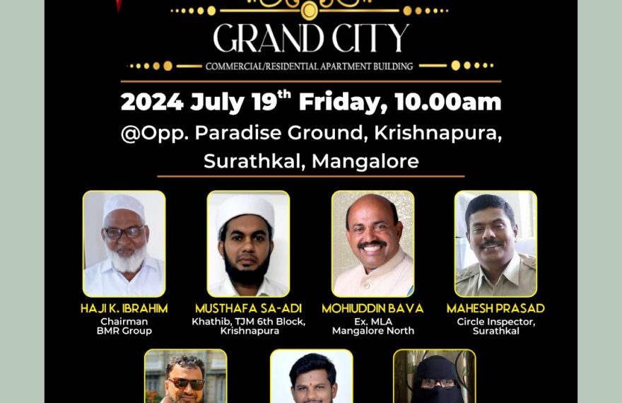 ಮಂಗಳೂರಿನ ಬಿಎಂಆರ್ ಗ್ರೂಪ್ ವತಿಯಿಂದ ಬಿಎಂಆರ್ ಗ್ರ್ಯಾಂಡ್ ಸಿಟಿ ಇದರ ಬ್ರೋಚರ್ ಬಿಡುಗಡೆ ಸಮಾರಂಭವು ಸುರತ್ಕಲ್ನ ಕೃಷ್ಣಾಪುರದಲ್ಲಿ ನಾಳೆ ನಡೆಯಲಿದೆ. ಜುಲೈ 19ರ ಶುಕ್ರವಾರ ಬೆಳಿಗ್ಗೆ 10 ಗಂಟೆಗೆ ಬ್ರೋಚರ್ ಬಿಡುಗಡೆ ಸಮಾರಂಭ ನಡೆಯಲಿದ್ದು, ಬಿಎಂಆರ್ ಗ್ರೂಪ್ನ ಚೇರ್ಮೆನ್ ಹಾಜಿ ಕೆ. ಇಬ್ರಾಹಿಂ, ಖತೀಬ್ ಮುಸ್ತಫಾ ಸಅದಿ, ಮಾಜಿ ಶಾಸಕ ಮೊಯ್ದಿನ್ ಬಾವಾ, ಸುರತ್ಕಲ್ ಸರ್ಕಲ್ ಇನ್ಸ್ಪೆಕ್ಟರ್ ಮಹೇಶ್ ಪ್ರಸಾದ್, ಮಂಗಳೂರು ಅರ್ಬನ್ ಡೆವಲಪ್ಮೆಂಟ್ ಅಥೋರಿಟಿಯ ಸದಸ್ಯ