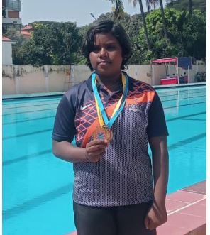 ಮೂಡುಬಿದಿರೆ: ಇಲ್ಲಿನ ಕಡಲಕೆರೆಯಲ್ಲಿರುವ ಪ್ರೇರಣಾ ಅನುದಾನಿತ ಹಿರಿಯ ಪ್ರಾಥಮಿಕ ಶಾಲೆಯ 7ನೇ ತರಗತಿ ವಿದ್ಯಾರ್ಥಿನಿ ಪ್ರೀತಿ ರಾಜ್ಯಮಟ್ಟದ ಈಜು ಸ್ಪರ್ಧೆಯಲ್ಲಿ ವಿಜೇತರಾಗಿ ರಾಷ್ಟ್ರಮಟ್ಟಕ್ಕೆ ಆಯ್ಕೆಯಾಗಿದ್ದಾರೆ.ರಾಜ್ಯ ಮಟ್ಟದಲ್ಲಿ ಸಮಗ್ರ ಶಿಕ್ಷಣ ಇಲಾಖೆ ಆಶ್ರಯದಲ್ಲಿ ನಡೆದ 4 x 100 ಮೀಟರ್ ರಿಲೇ: ಪ್ರಥಮ ಸ್ಥಾನ ಗಳಿಸಿ ರಾಷ್ಟ್ರಮಟ್ಟಕ್ಕೆ ಆಯ್ಕೆಯಾಗಿದ್ದಾರೆ. ಹಿಂದೆ ಅವರು 400 ಮೀಟರ್ ಫ್ರೀ ಸ್ಟೈಲ್- ದ್ವಿತೀಯ ಸ್ಥಾನ, 400 ಮೀಟರ್ ಫ್ರೀ ಸ್ಟೈಲ್- ಪ್ರಥಮ