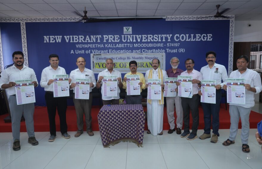 ಮೂಡುಬಿದಿರೆ : ಕಲ್ಲಬೆಟ್ಟುವಿನಲ್ಲಿರುವ ನ್ಯೂ ವೈಬ್ರೆಂಟ್ ಪಿಯು ಕಾಲೇಜಿನ ಸಭಾಂಗಣದಲ್ಲಿ ಕಾಲೇಜಿನ ದ್ವೈಮಾಸಿಕ ಪತ್ರಿಕೆ “ವಾಯ್ಸ್ ಆಫ್ ವೈಬ್ರೆಂಟ್”ನ ಬಿಡುಗಡೆ ಸಮಾರಂಭವು ಸೋಮವಾರ ನಡೆಯಿತು. ಮಾಜಿ ಸಚಿವ ಕೆ. ಅಭಯಚಂದ್ರ ಜೈನ್ ವಾಯ್ಸ್ ಆಫ್ ವೈಬ್ರೆಂಟ್ ಪತ್ರಿಕೆಯ ಮೊದಲ ಸಂಚಿಕೆಯನ್ನು ಬಿಡುಗಡೆಗೊಳಿಸಿ ಮಾತನಾಡಿ ವಿದ್ಯಾರ್ಥಿಗಳು ತಮ್ಮ ಪಠ್ಯ ಚಟುವಟಿಕೆಯೊಂದಿಗೆ ಪಠ್ಯೇತರ ಕೌಶಲವನ್ನು ಬರವಣಿಗೆಯ ರೂಪದಲ್ಲಿ ಈ ಪತ್ರಿಕೆಯಲ್ಲಿ ಪ್ರಕಟಿಸಬೇಕು. ಸಂಸ್ಥೆಯು ತಮಗೆ