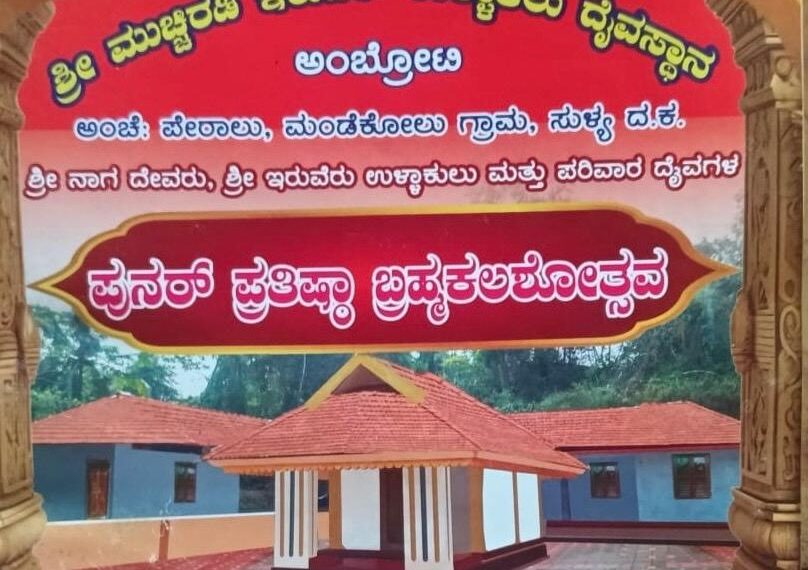 ಸುಳ್ಯ::ಮಂಡೆಕೋಲು ಗ್ರಾಮದ ಪೇರಾಲು ಅಂಬ್ರೋಟಿಯಲ್ಲಿರುವ ಶ್ರೀ ಮುಚ್ಚಿರಡಿ ಇರುವೆರ್ ಉಳ್ಳಾಕುಲು ದೈವಸ್ಥಾನದ ಪುನರ್ ಪ್ರತಿಷ್ಠಾ ಬ್ರಹ್ಮಕಲಶೋತ್ಸವದ ಧಾರ್ಮಿಕ ಕಾರ್ಯಕ್ರಮಗಳು ಇಂದಿನಿಂದ ಆರಂಭಗೊಂಡಿದ್ದು, ಫೆ. 22ರ ವರೆಗೆ ನಡೆಯಲಿದೆ. ಧಾರ್ಮಿಕ ಕಾರ್ಯಕ್ರಮದ ಜೊತೆಗೆ ಸಾಂಸ್ಕೃತಿಕ ಕಾರ್ಯಕ್ರಮಗಳು ವಿಜೃಂಭಣೆಯಿಂದ ನಡೆಯಲಿದೆ. ಶ್ರೀ ಕ್ಷೇತ್ರದಲ್ಲಿ ಶ್ರೀ ನಾಗದೇವರು ಮತ್ತು ಇರುವೆರು ಉಳ್ಳಾಕುಲು ಹಾಗೂ ಪರಿವಾರ ದೈವಗಳ ಸಾನಿಧ್ಯದಲ್ಲಿ ವೇದಮೂರ್ತಿ ಬ್ರಹ್ಮಶ್ರೀ