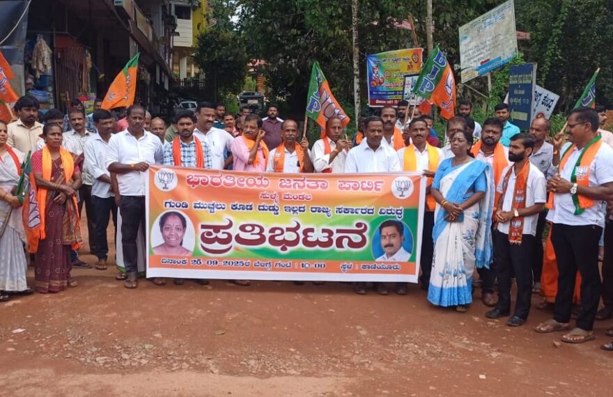ಮಳೆಯಿಂದಾಗಿ ಕೆಟ್ಟು ಹೋಗಿರುವ ರಾಜ್ಯದ ರಸ್ತೆಗಳ ಗುಂಡಿ ಮುಚ್ಚಲು ಕೂಡ ಅನುದಾನ ನೀಡದ ರಾಜ್ಯದ ಕಾಂಗ್ರೆಸ್ ಸರಕಾರದ ವಿರುದ್ಧ ಇಂದು ಭಾರತೀಯ ಜನತಾ ಪಾರ್ಟಿ ಸುಳ್ಯ ಮಂಡಲ ವತಿಯಿಂದ ಸುಬ್ರಹ್ಮಣ್ಯ ಮಂಜೇಶ್ವರ ರಾಜ್ಯ ಹೆದ್ದಾರಿಯ ಕಾಣಿಯೂರಿನಲ್ಲಿ ಪ್ರತಿಭಟನೆ ನಡೆಯಿತು. ಪ್ರತಿಭಟನೆಯನ್ನು ಉದ್ದೇಶಿಸಿ ಮಾತನಾಡಿದ ಸುಳ್ಯ ಶಾಸಕಿ ಕುಮಾರಿ ಭಾಗಿರತಿ ಮುರುಳ್ಯ, ಜಿಲ್ಲಾ ಬಿಜೆಪಿ ಉಪಾಧ್ಯಕ್ಷ ಶ್ರೀ ರಾಕೇಶ್ ರೈ ಕೆಡಂಜಿ, ಮಂಡಲ ಪ್ರಧಾನ ಕಾರ್ಯದರ್ಶಿ ಶ್ರೀ ವಿನಯ್ ಕುಮಾರ್