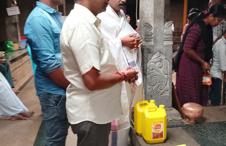 ಪಂಜ: ಪಂಜ ಶ್ರೀ ಪರಿವಾರ ಪಂಚಲಿಂಗೇಶ್ವರ ದೇವಸ್ಥಾನಕ್ಕೆ ಪ್ರಸಾದ ಚೀಲಗಳನ್ನು ಸೌಧಾಮಿನಿ ಮಾಲಕರಾದ ಮೋನಪ್ಪ ನಾಯ್ಕ್ ಎಂಬವರು ಸೇವಾರೂಪದಲ್ಲಿ ನೀಡಿದರು. ಇವರಿಗೆ ದೇಗುಲದ ವತಿಯಿಂದ ಶ್ರೀ ದೇವರ ಪ್ರಸಾದ ನೀಡಲಾಯಿತು. ಈ ಸಂದರ್ಭದಲ್ಲಿ ವ್ಯವಸ್ಥಾಪನಾ ಸಮಿತಿಯ ಅಧ್ಯಕ್ಷರಾದ ಡಾ. ದೇವಿಪ್ರಸಾದ್ ಕಾನತ್ತೂರು, ಹಾಗೂ ದೇಗುಲದ ಪ್ರಧಾನ ಅರ್ಚಕರಾದ ರಾಮಚಂದ್ರ ಭಟ್ ಉಪಸ್ಥಿತಿದ್ದರು.