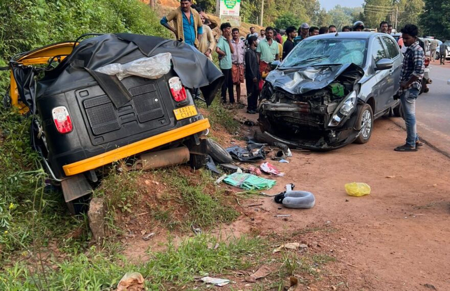 ಪುತ್ತೂರು: ಕುಂಬ್ರ ಸಮೀಪದ ಪರ್ಪುಂಜ ಕೊಯಿಲತ್ತಡ್ಕ ಅಬೋಡ್ ಹಾಲ್ ಬಳಿ ನವೆಂಬರ್ 1ರಂದು ಸಂಜೆ ಈ ಕಾರು ಹಾಗೂ ರಿಕ್ಷಾ ನಡುವೆ ಸಂಭವಿಸಿದ ಭೀಕರ ಅಪಘಾತದಲ್ಲಿ ಒಂದು ಬಾಲಕಿ ದುರ್ಮರಣ ಹೊಂದಿದ್ದಾಳೆ. ಪುತ್ತೂರುನಿಂದ ಕುಟುಂಬ ಸಹಿತ ತಿಂಗಳಾಡಿ ಕಡೆಗೆ ತೆರಳುತ್ತಿದ್ದ ರಿಕ್ಷಾ, ಸುಳ್ಯ ದಿಕ್ಕಿನಿಂದ ಪುತ್ತೂರಿನತ್ತ ಬರುತ್ತಿದ್ದ ಕಾರು ತೀರಾ ವಿರುದ್ಧ ದಿಕ್ಕಿನಿಂದ ಬಂದು ಡಿಕ್ಕಿ ಹೊಡೆದ ಪರಿಣಾಮ ರಿಕ್ಷಾ ಸಂಪೂರ್ಣ ನಜ್ಜುಗುಜ್ಜಾಗಿದೆ. ಕಾರು ಚಾಲಕನಾದ ಕುಂಬ್ರದ ಬರೋಡ