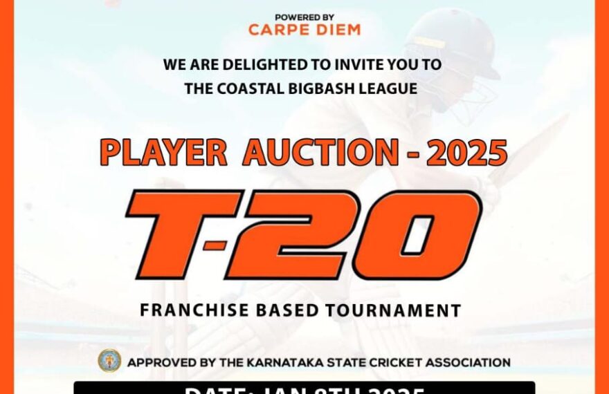 ಮಂಗಳೂರು ಒಕೇಶನಲ್ಸ್ ವತಿಯಿಂದ ಆಯೋಜಿಸಲಾಗಿರುವ ಕೋಸ್ಟಲ್ ಬಿಗ್ ಬಾಶ್ ಲೀಗ್ -2025 , T-20 ಪಂದ್ಯದ ಆಟಗಾರರ ಹರಾಜು ಪ್ರಕ್ರಿಯೆ ಜ.8ರಂದು ನಗರದ ಎಕ್ಕೂರಿನ ಎ.ಜೆ ಗ್ರಾಂಡ್ ಎಲೈಟ್ ಹೊಟೇಲ್ನಲ್ಲಿ ನಡೆಯಲಿದೆ.ಕರ್ಪೆ ಡೈಮ್ ಪ್ರಾಯೋಜಕತ್ವದಲ್ಲಿ ನಡೆಯಲಿರುವ ಈ ಪಂದ್ಯಾವಳಿಯ ಹರಾಜು ಪ್ರಕ್ರಿಯೆಯು ಜ.೮ರಂದು ಅಪರಾಹ್ನ ೨ಗಂಟೆಗೆ ಆರಂಭಗೊಳಲಿದ್ದು, ಮಧು ಮೈಲಂಕೋಡಿ ಅವರು ನಡೆಸಿಕೊಡಲಿದ್ದಾರೆ.ಕೀರ್ತಿ ರಾಜ್ ರೈ, ಅಖಿಲೇಶ್ ಶೆಟ್ಟಿ, ಶೇಕ್ ಮಹಮ್ಮದ್ ಅತೀಫ್ ಸಂಘಟಕರಾಗಿದ್ದಾರೆ.