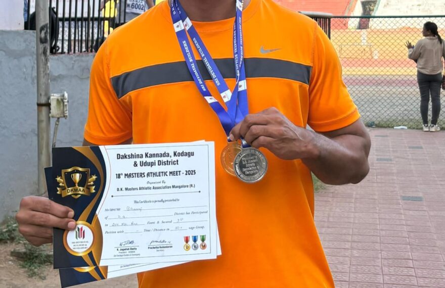 ಪುತ್ತೂರು: ಮಂಗಳೂರು ಮಂಗಳಾ ಕ್ರೀಡಾಂಗಣದಲ್ಲಿ ನಡೆದ ದ.ಕ, ಉಡುಪಿ ಹಾಗೂ ಕೊಡಗು ಜಿಲ್ಲೆಗಳನ್ನೊಳಗೊಂಡ ಅಂತರ್ ಜಿಲ್ಲಾ ಮಾಸ್ಟರ್ಸ್ ಕ್ರೀಡಾ ಕೂಟದಲ್ಲಿ ಪುತ್ತೂರಿನ ಧೀರಜ್ ಕೆಮ್ಮಿಂಜೆಯವರು ಶಾಟ್ಪುಟ್ ಮತ್ತು 100 ಮೀ ಓಟದಲ್ಲಿ ಚಿನ್ನ ಹಾಗೂ ಬೆಳ್ಳಿ ಪದಕವನ್ನು ಪಡೆದಿರುತ್ತಾರೆ. ಇವರು ಜಯಪ್ರಕಾಶ್ ಮರೀಲ್ ಮತ್ತು ಉಷಾರಾಣಿ ದಂಪತಿಯ ಪುತ್ರ. ಇವರು ರಾಮಕ್ಷತ್ರಿಯ ಸೇವಾ ಸಂಘ ಪುತ್ತೂರಿನ ಸದಸ್ಯ ಹಾಗೂ ರಾಮಕ್ಷತ್ರಿಯ ಯುವ ವೃoದದ ಸದಸ್ಯರು ಆಗಿರುತ್ತಾರೆ.