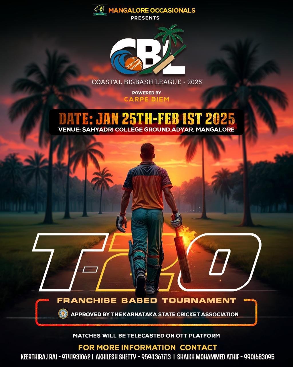 ಮಂಗಳೂರಿನಲ್ಲಿ ಕೋಸ್ಟಲ್ ಬಿಗ್ ಭಾಷ್ ಲೀಗ್ ಕ್ರಿಕೆಟ್ ಪಂದ್ಯಾಟ