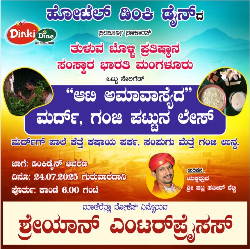 ಜುಲೈ 24ರಂದು ಹೊಟೇಲ್ ಡಿಂಕಿ ಡೈನ್ ಆವರಣದಲ್ಲಿ ಆಟಿ ಅಮಾವಾಸ್ಯೆಯ ಕಷಾಯ ಮತ್ತು ಮೆಂತೆ ಗಂಜಿ ಉಚಿತವಾಗಿ ವಿತರಣೆ