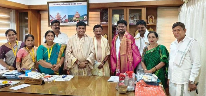ಸುಬ್ರಹ್ಮಣ್ಯ ವ್ಯವಸ್ಥಾಪನಾ ಸಮಿತಿಯಿಂದ ಸನ್ಮಾನ ಸುಬ್ರಹ್ಮಣ್ಯ.ಸುಳ್ಯದಲ್ಲಿ ಮೂರು ದಿನಗಳ ಕಾಲ ನಡೆದ ವೈಟ್ ಲಿಫ್ಟಿಂಗ್ ನಲ್ಲಿ ರವಿ ಕಕ್ಕೆಪದವು ಅವರ ಸುಪುತ್ರ ಗಣೇಶ್ ಸುಬ್ರಹ್ಮಣ್ಯ ಅವರು ಎರಡು ಗೋಲ್ಡನ್ ಮಡೆಲ್ ಪಡೆದಿದ್ದಾರೆ.ಈ ಹಿನ್ನೆಲೆಯಲ್ಲಿ ನ.10 ರಂದು ಕುಕ್ಕೆ ಶ್ರೀ ಸುಬ್ರಹ್ಮಣ್ಯ ದೇವಸ್ಥಾನದ ಆಡಳಿತ ಕಛೇರಿಯಲ್ಲಿ ವ್ಯವಸ್ಥಾಪನಾ ಸಮಿತಿ ಅಧ್ಯಕ್ಷ ಹರೀಶ್ ಇಂಜಾಡಿ ಗಣೇಶ್ ಅವರನ್ನು ಶಾಲು ಹೊದಿಸಿ ಗೌರವಿಸಿದರು. ಇದೇ ಸಂದರ್ಭ ಬೆಳ್ಳಿ ರಥ ಸಮರ್ಪಣಾ ಕಾರ್ಯಕ್ರಮಕ್ಕೆ ಆಗಮಿಸಿದ್ದ ವಿನಯ್ ಗೂರೂಜಿ, ಪುತ್ತೂರು ಮಾಜಿ ಶಾಸಕ ಸಂಜೀವ ಮಠಂದೂರು ಅವರುಗಳು ಗಣೇಶ್ ರವರಿಗೆ ಶುಭಹಾರೈಸಿದರು. ಕುಕ್ಕೆ ಸುಬ್ರಹ್ಮಣ್ಯ ದೇವಸ್ಥಾನದ ವ್ಯವಸ್ಥಾಪನಾ ಸಮಿತಿ ಸದಸ್ಯರು ಉಪಸ್ಥಿತರಿದ್ದರು.
