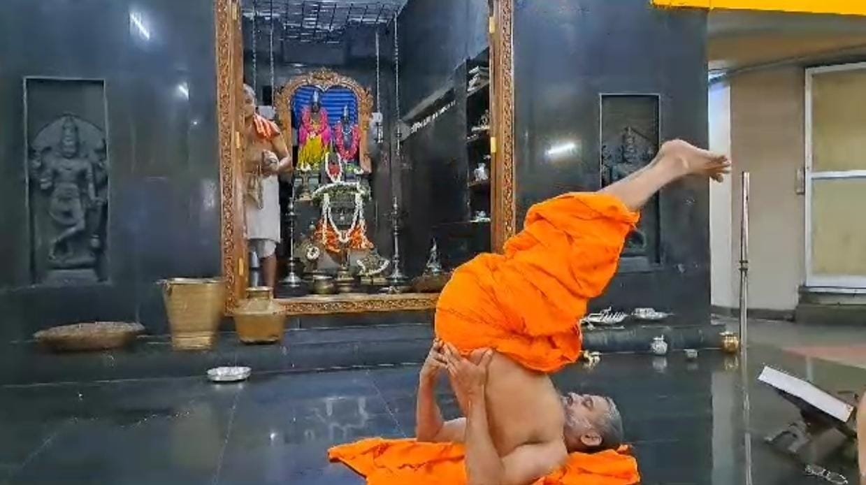 ಮಠದಲ್ಲಿ ದೇವರ ಗರ್ಭಗುಡಿಯ ಮುಂಭಾಗ ಸ್ವಾಮೀಜಿ ವಿವಿಧ ಯೋಗಾಸನದ ಭಂಗಿಗಳನ್ನು ಪ್ರದರ್ಶನ ಮಾಡಿದರು. ಮಠದ ಶಿಷ್ಯರು ಪೇಜಾವರ ಶ್ರೀಗಳಿಗೆ ಸಾತ್ ನೀಡಿದರು. ಮಾನಸಿಕ ಮತ್ತು ಶಾರೀರಿಕ ಆರೋಗ್ಯವನ್ನು ಕಾಪಾಡಲು ಯೋಗ ಅತ್ಯವಶ್ಯಕ. ಈ ಸಂದರ್ಭದಲ್ಲಿ, ಎಲ್ಲರೂ ಸೂರ್ಯ ನಮಸ್ಕಾರ ಮಾಡುವುದನ್ನು ರೂಢಿಸಿಕೊಳ್ಳಿ ಎಂದು ಪೇಜಾವರ ಸ್ವಾಮೀಜಿ ಕರೆ ನೀಡಿದ್ದಾರೆ.