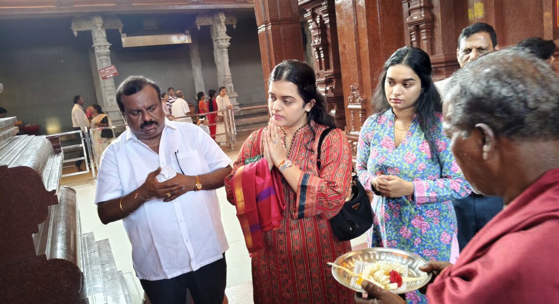 ಕಾಪು: ಹೊಸ ಮಾರಿಗುಡಿಯ ಶ್ರೀ ಮಾರಿಯಮ್ಮನ ದರುಶನ ಪಡೆದ ಸೂರ್ಯ ಕುಮಾರ್ ಯಾದವ್ ಪತ್ನಿ ದೇವಿಶಾ