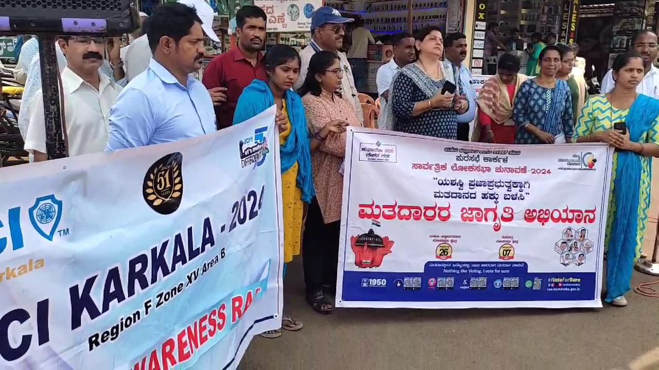 ಕಾರ್ಕಳ : ಲೋಕಸಭಾ ಚುನಾವಣೆಯ ಹಿನ್ನೆಲೆಯಲ್ಲಿ ಸಾರ್ವಜನಿಕರಿಗೆ ಮತದಾನದ ಬಗ್ಗೆ ಜಾಗೃತಿ ಮೂಡಿಸುವ ಕಾರ್ಯಕ್ರಮವು ಕಾರ್ಕಳದ ಬಸ್ ನಿಲ್ದಾಣದಲ್ಲಿ ನಡೆಯಿತು.