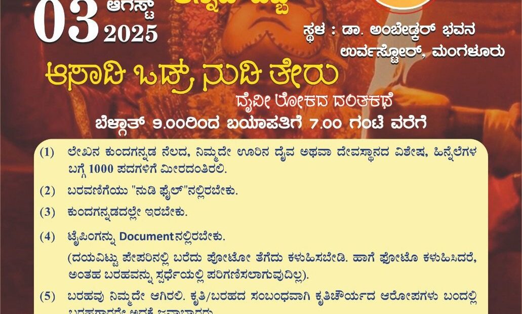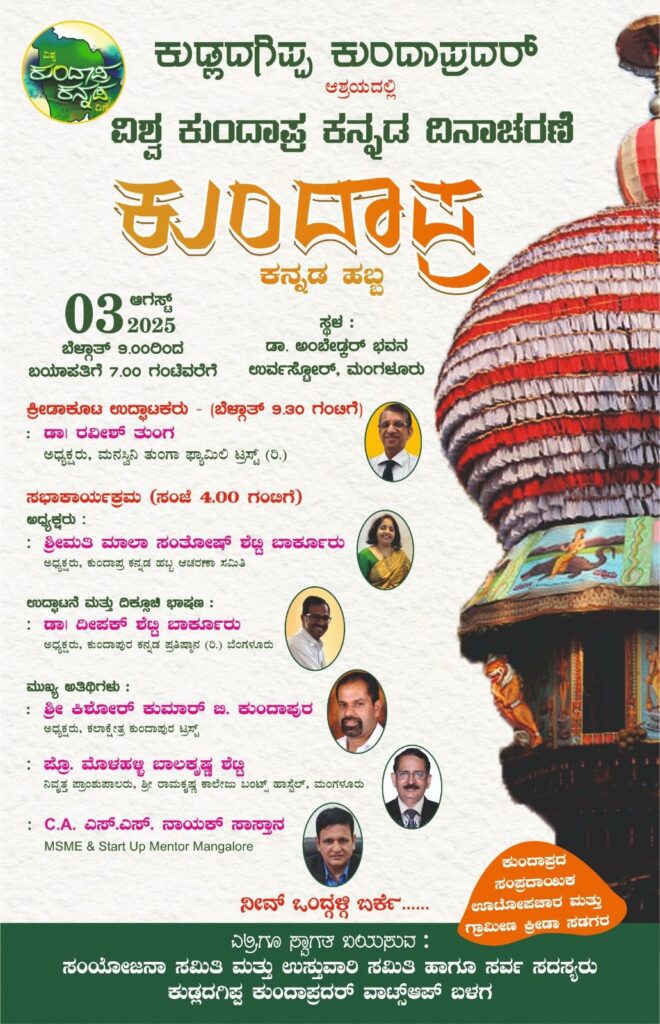 ಉರ್ವ ಸ್ಟೋರ್ ಅಂಬೇಡ್ಕರ್ ಭವನ ಮಂಗಳೂರಿನಲ್ಲಿ ಆಗಸ್ಟ್ 3 ಭಾನುವಾರದಂದು “ಕುಂದಾಪುರ ಕನ್ನಡ ಹಬ್ಬ -2025”