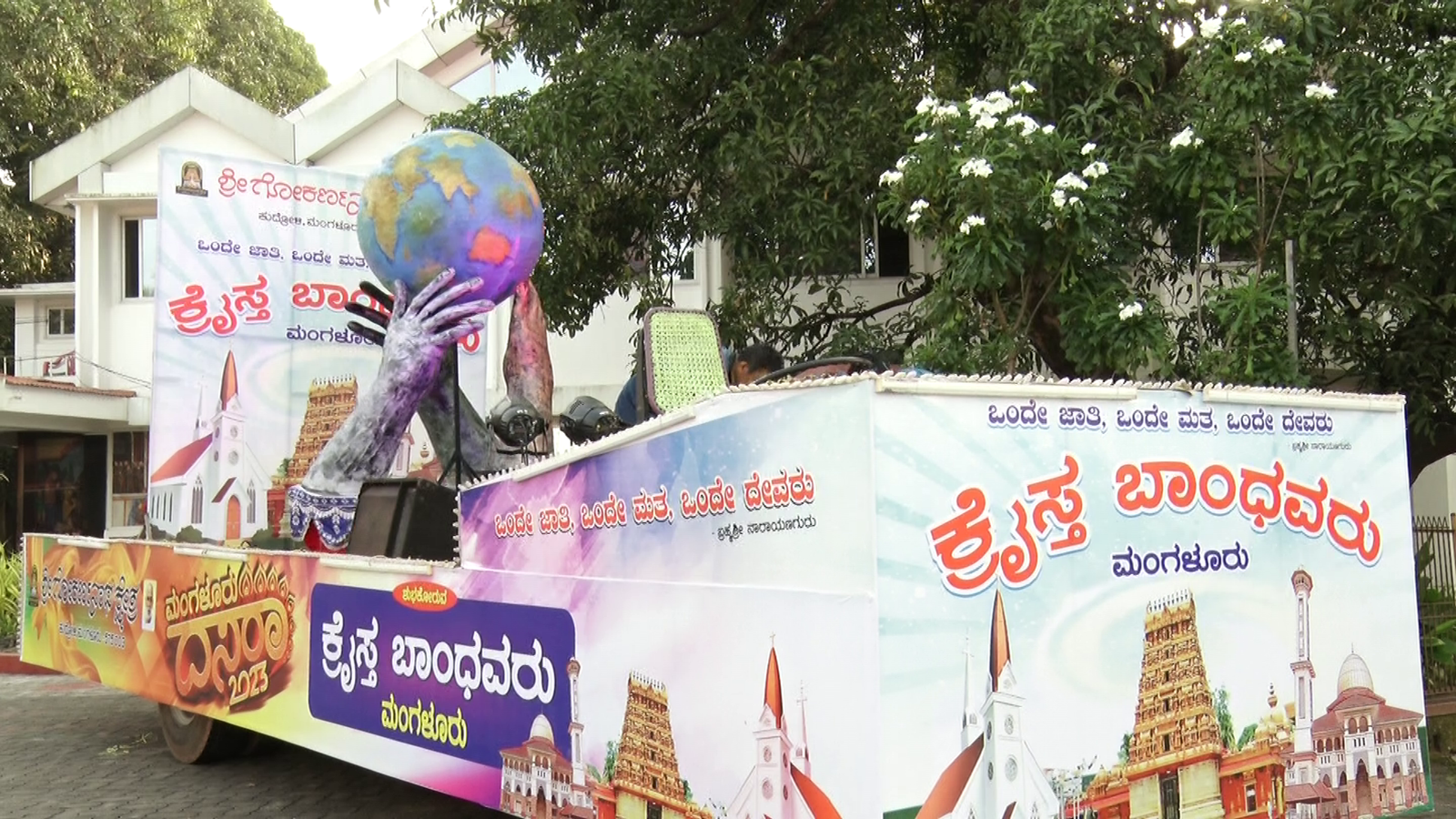ಕ್ರೈಸ್ತ ಬಾಂಧವರ ಸ್ತಬ್ಧಚಿತ್ರ ಇದೇ ಮೊದಲ ಬಾರಿಗೆ ಮಂಗಳೂರು ದಸರಾ ಶೋಭಾಯಾತ್ರೆಯಲ್ಲಿ ಭಾಗವಹಿಸಿದೆ. ಸಾದಾಸೀದ ಆಗಿರುವ ಈ ಸ್ತಬ್ಧಚಿತ್ರದ ಮುಂಭಾಗದಲ್ಲಿಯೇ ದೇವಸ್ಥಾನ, ಮಸೀದಿ ಹಾಗೂ ಚರ್ಚ್ ಗಳ ಚಿತ್ರವಿದೆ. ಟ್ಯಾಬ್ಲೊದಲ್ಲಿ ಮೂರು ಹಸ್ತಗಳು ಗ್ಲೋಬ್ ಅನ್ನು ಎತ್ತಿ ಹಿಡಿದಿದೆ. ಹಸ್ತ ಸಹಿತವಾಗಿ ಗ್ಲೋಬ್ ಸುತ್ತಲೂ ಸುತ್ತುತ್ತಿದ್ದು, ಈ ಗ್ಲೋಬ್ ಆಕರ್ಷಕ ನೀಲಿ ರಂಗಿನಿಂದ ಮಿನುಗುತ್ತಿದೆ. ಈ ಮೂರು ಹಸ್ತಗಳು ಹಿಂದೂ – ಮುಸ್ಲಿಂ – ಕ್ರೈಸ್ತ ಧರ್ಮಗಳನ್ನು ಪ್ರತಿನಿಧಿಸುತ್ತದೆ. ಎಲ್ಲಾ ಧರ್ಮದವರು ಸೇರಿ ಈ ಸಮಾಜವನ್ನು ಎತ್ತಿಹಿಡಿಯುವ ಚಿತ್ರಣವನ್ನು ಈ ಮೂಲಕ ಬಿಂಬಿಸಲಾಗಿದೆ. ಹಾಗೇ ಈ ಸಂದೇಶವು ಎಲ್ಲರನ್ನೂ ತಲುಪಿ ಬಂಧುತ್ವ ಬೆಳೆಯಲಿ ಎಂಬ ಸದಾಶಯ ಇದರಲ್ಲಿದೆ.