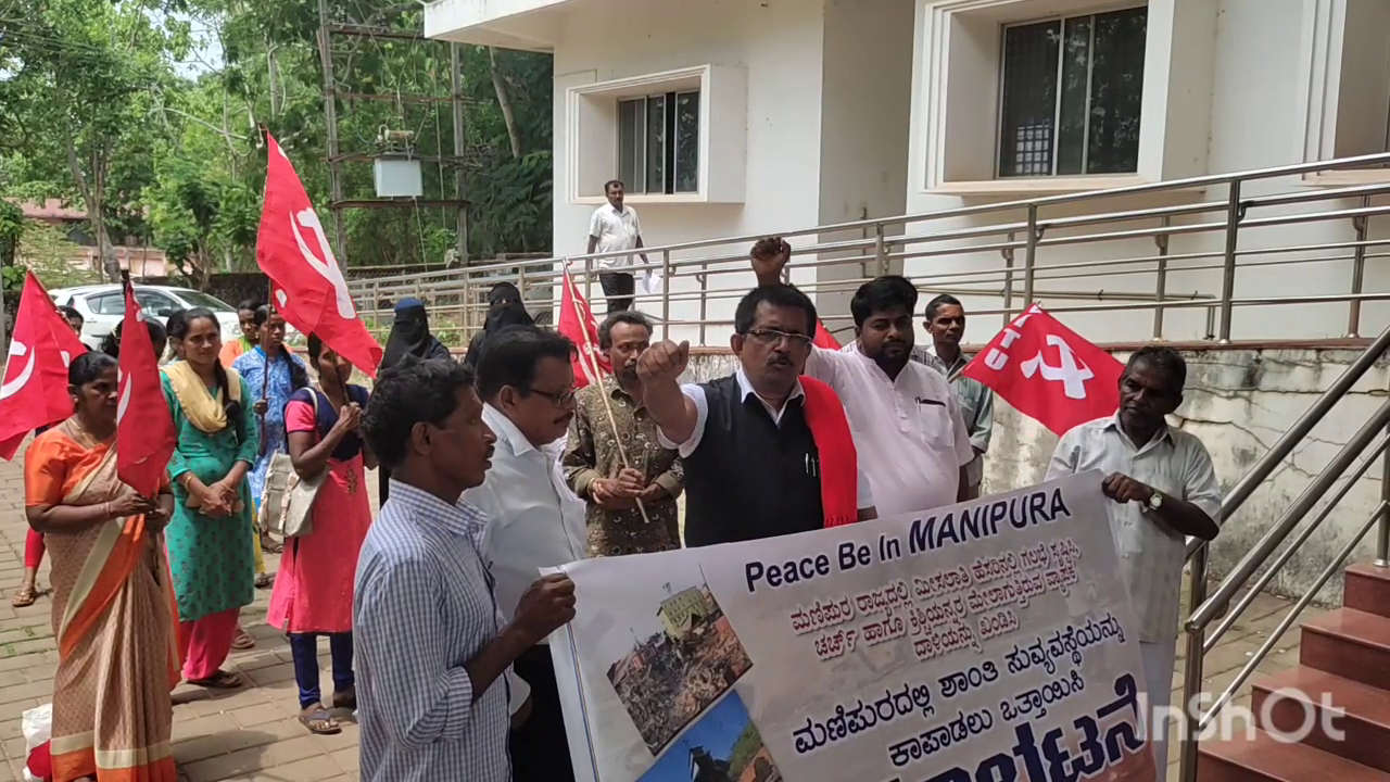 ಪುತ್ತೂರು : ಮಣಿಪುರ ರಾಜ್ಯದಲ್ಲಿ ಮೀಸಲಾತಿ ಗಲಭೆ ಸೃಷ್ಠಿಸಿ ಚರ್ಚ್ ಮತ್ತು ಕ್ರಿಶ್ಚಿಯನರ ಮೇಲೆ ಮೇಲೆ ನಡೆಸಲಾಗಿರುವ ದಾಳಿಯನ್ನು ಖಂಡಿಸಿ ಮತ್ತು ಮಣಿಪುರದಲ್ಲಿ ಶಾಂತಿ-ಸುವ್ಯವಸ್ಥೆಯನ್ನು ಕಾಪಾಡುವಂತೆ ಆಗ್ರಹಿಸಿ ಪುತ್ತೂರಿನ ಆಡಳಿತ ಸೌಧದ ಎದುರು ಸಿಐಟಿಯು ಬೆಂಬಲಿತ ತಾಲ್ಲೂಕು ಬೀಡಿ ಕೆಲಸಗಾರರ ಸಂಘದ ನೇತೃತ್ವದಲ್ಲಿ ಪ್ರತಿಭಟನೆ ನಡೆಯಿತು.