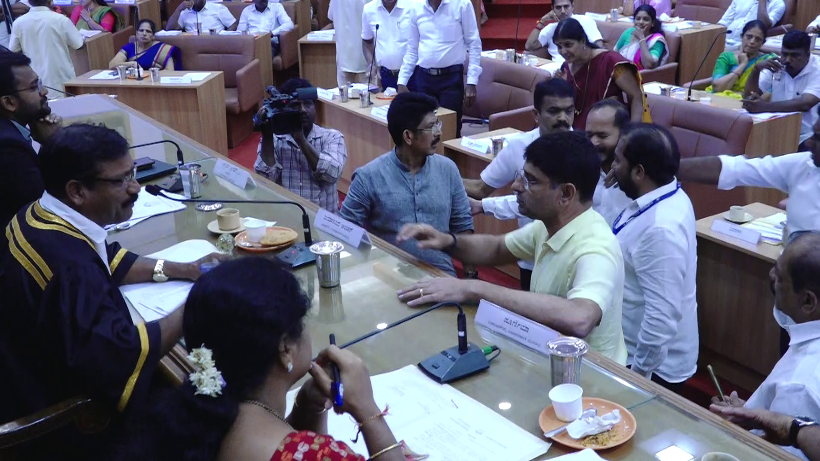 ನಿರಾಧಾರ ಆರೋಪ ಎಂದು ಆಡಳಿತ ಪಕ್ಷ ಸಮಜಾಯಿಷಿ ನೀಡಿದರು.ಈ ಬಗ್ಗೆ ಕೆಲಹೊತ್ತು ಆಡಳಿತ ಹಾಗೂ ವಿಪಕ್ಷ ಸದಸ್ಯರ ನಡುವೆ ಆರೋಪ ಪ್ರತ್ಯಾರೋಪಗಳ ಸುರಿಮಳೆಯಾಯಿತು. ಆಯುಕ್ತ ಅಕ್ಷಯ್ ಶ್ರೀಧರ್ ನಡುವೆ ಪ್ರತಿಕ್ರಿಯಿಸುವ ಸಂದರ್ಭ ಕಾನೂನಿನ ವಿಚಾರ ಪ್ರಸ್ತಾಪಿಸಿದರು. ಕಾನೂನು ವಿಚಾರ ನನಗೆ ಕಲಿಸಬೇಡಿ, ನನಗೆ ಗೊತ್ತಿದೆ ಎಂದು ವಿನಯ್ರಾಜ್ ಪ್ರತಿಕ್ರಿಯಿಸಿದಾಗ ಆಯುಕ್ತ ಅಕ್ಷಯ್ ಶ್ರೀಧರ್, ಸ್ವಲ್ಪ ಏರು ಧ್ವನಿಯಲ್ಲಿ ಗೊತ್ತಿದ್ದರೆ ಕುಳಿತುಕೊಳ್ಳಿ ಎಂದು ಹೇಳಿದ್ದು, ವಿಪಕ್ಷ ಸದಸ್ಯರನ್ನು ಕೆರಳಿಸಿತು.