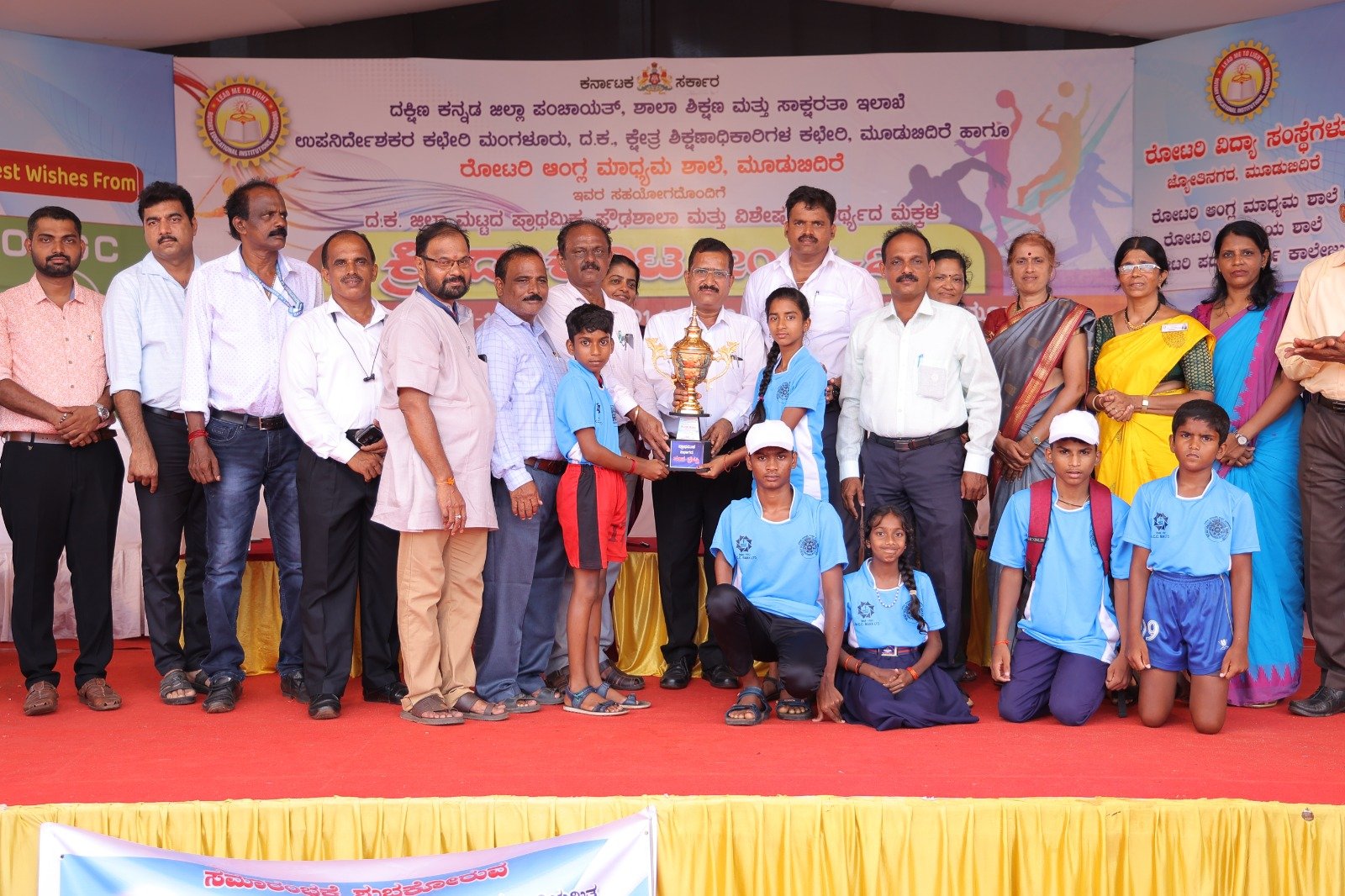ಮೂಡುಬಿದಿರೆ : ದ.ಕ. ಜಿಲ್ಲಾ ಪಂಚಾಯತ್ ಶಾಲಾ ಶಿಕ್ಷಣ ಮತ್ತು ಸಾಕ್ಷರತಾ ಇಲಾಖೆ ಉಪ ನಿರ್ದೇಶಕರ ಕಛೇರಿ ಮತ್ತು ಕ್ಷೇತ್ರ ಶಿಕ್ಷಣಾಧಿಕಾರಿಗಳ ಕಛೇರಿ ಹಾಗೂ ರೋಟರಿ ಆಂಗ್ಲ ಮಾಧ್ಯಮ ಶಾಲೆ, ಮೂಡುಬಿದಿರೆ ಇವರ ಸಹಯೋಗದೊಂದಿಗೆ ನಡೆದ ದ.ಕ. ಜಿಲ್ಲಾ ಮಟ್ಟದ ಪ್ರಾಥಮಿಕ, ಪ್ರೌಢಶಾಲಾ ವಿಶೇಷ ಸಾಮರ್ಥ್ಯದ ಮಕ್ಕಳ ಕ್ರೀಡಾಕೂಟದಲ್ಲಿ 14 ವರ್ಷ ವಯೋಮಿತಿಯ ವಿಭಾಗದಲ್ಲಿ ಬೆಳ್ತಂಗಡಿ ತಾಲೂಕು ಹಾಗೂ 17ರ ವಯೋಮಿತಿಯ ವಿಭಾಗದಲ್ಲಿ ಬಂಟ್ವಾಳ ತಾಲೂಕು ಸಮಗ್ರ ಪ್ರಶಸ್ತಿಯನ್ನು ಪಡೆದುಕೊಂಡಿದೆ.