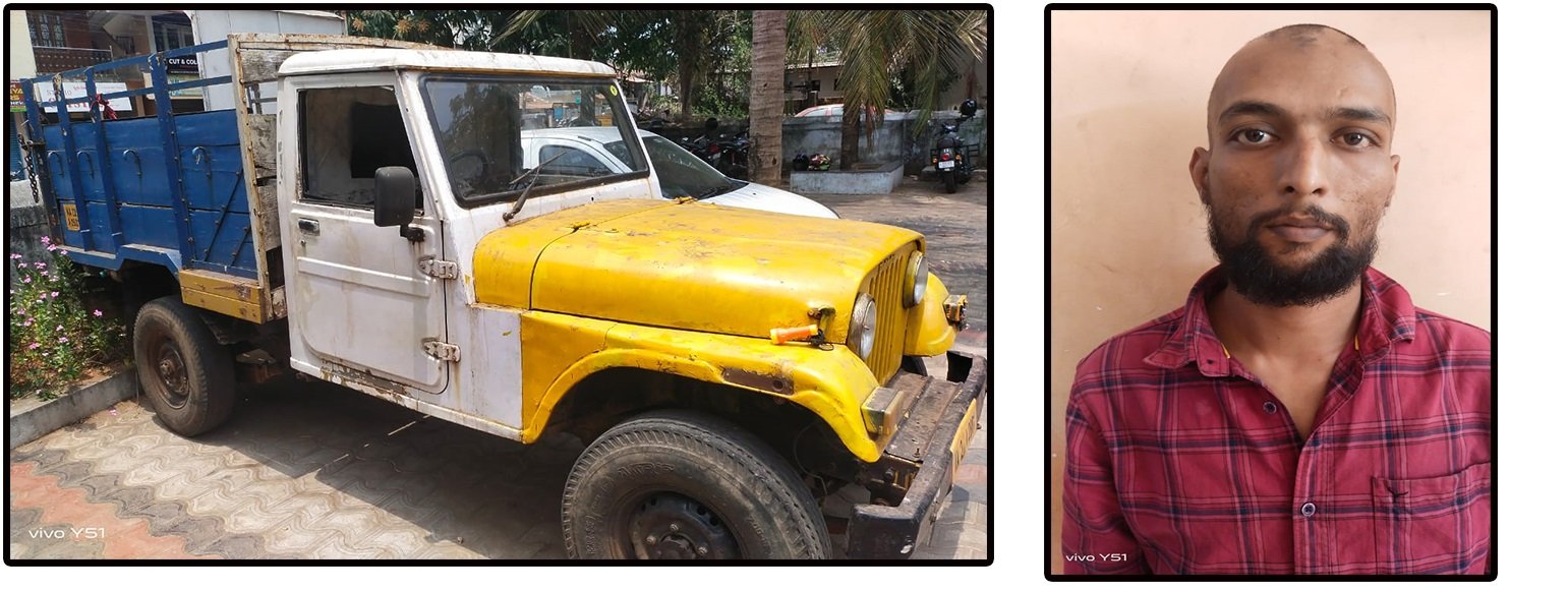 ಕೇರಳ ಮೇಲ್ಪರಂಬ ಮಾಂಗಡ್ ನಿವಾಸಿ ಅಹಮ್ಮದ್ ರಮ್ಸಾನ್ ಯಾನೆ ರಮ್ಸಾನ್ (26) ಬಂಧಿತ. ಜ.3 ರಂದು ಕೋಟೆಕಾರು ಸೌತ್ ಇಂಡಿಯಾ ಮರದ ಡಿಪೋ ಬಳಿ ನಿಲ್ಲಿಸಲಾಗಿದ್ದ ಪಿಕಪ್ ಕಳವು ನಡೆದಿತ್ತು.ಈ ಕುರಿತು ಮಾಲೀಕ ಮಹಮ್ಮದ್ ಶರೀಫ್ ಎಂಬವರು ಉಳ್ಳಾಲ ಪೊಲೀಸ್ ಠಾಣೆಯಲ್ಲಿ ದೂರು ದಾಖಲಿಸಿದ್ದರು. ತನಿಖೆ ಕೈಗೆತ್ತಿಕೊಂಡ ಉಳ್ಳಾಲ ಪೊಲೀಸರು ಅಂತರಾಜ್ಯ ವಾಹನ ಕಳ್ಳರ ಜಾಡು ಹಿಡಿದಾಗ, ಆರೋಪಿ ರಮ್ಸಾನ್ ಪತ್ತೆಯಾಗಿದ್ದು, ವಿಚಾರಣೆ ನಡೆಸಿದಾಗ ಪಿಕಪ್ ವಾಹನ ಕಳವು ಬೆಳಕಿಗೆ ಬಂದಿದೆ. ಆರೋಪಿ ವಿರುದ್ದ ಉಳ್ಳಾಲ, ಬೆಳ್ತಂಗಡಿ, ಮಡಿಕೇರಿ, ಕೇರಳದ ಹೊಸದುರ್ಗ, ಕಾಸರಗೋಡು, ಕುಂಬಳೆ, ಬೇಡಗಂ, ಬೇಕಲ ಪೊಲೀಸ್ ಠಾಣೆಗಳಲ್ಲಿ ವಾಹನ ಕಳವು ಪ್ರಕರಣಗಳು ಇವೆ.