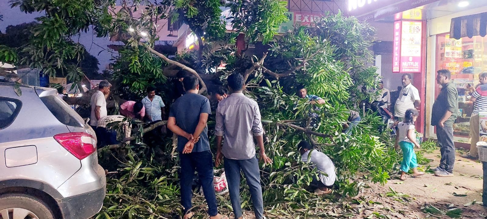 ಮಧ್ಯಮ ಗಾತ್ರದ ಮಾವಿನ ಮರ ರಸ್ತೆಗೆ ಮುರಿದು ಬಿದ್ದಿತ್ತು. ಸಾರ್ವಜನಿಕರು, ವಾಹನಗಳು ರಸ್ತೆಯಲ್ಲಿ ಸಂಚರಿಸುತಿದ್ದರೂ ಯಾವುದೇ ಅಪಾಯ ಉಂಟಾಗಿಲ್ಲ. ಮಾವಿನ ಮರ ಬಿದ್ದ ಸುದ್ದಿ ತಿಳಿದು ಸ್ಥಳಕ್ಕೆ ಬಂದ ಕೆಲವರು ಮಾವನ್ನು ಕೊಂಡೊಯ್ದ ಘಟನೆಯೂ ನಡೆಯಿತು. ಸುದ್ದಿ ತಿಳಿದು ತಕ್ಷಣ ಸ್ಥಳಕ್ಕೆ ಧಾವಿಸಿದ ಶಾಸಕರು ಅರಣ್ಯ ಇಲಾಖೆ ಅಧಿಕಾರಿಗಳಿಗೆ ಸೂಚನೆಯನ್ನು ನೀಡಿ ಮರವನ್ನು ತೆರವು ಮಾಡಿಸಿದ್ದಾರೆ.