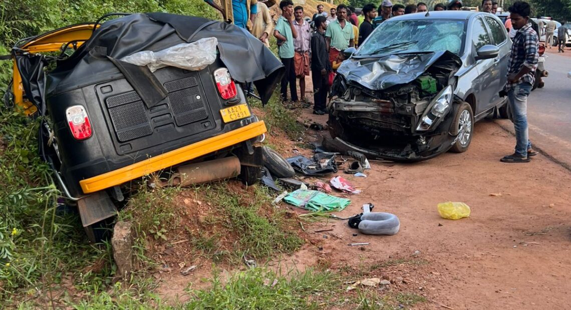 ಪುತ್ತೂರುನಿಂದ ಕುಟುಂಬ ಸಹಿತ ತಿಂಗಳಾಡಿ ಕಡೆಗೆ ತೆರಳುತ್ತಿದ್ದ ರಿಕ್ಷಾ, ಸುಳ್ಯ ದಿಕ್ಕಿನಿಂದ ಪುತ್ತೂರಿನತ್ತ ಬರುತ್ತಿದ್ದ ಕಾರು ತೀರಾ ವಿರುದ್ಧ ದಿಕ್ಕಿನಿಂದ ಬಂದು ಡಿಕ್ಕಿ ಹೊಡೆದ ಪರಿಣಾಮ ರಿಕ್ಷಾ ಸಂಪೂರ್ಣ ನಜ್ಜುಗುಜ್ಜಾಗಿದೆ.