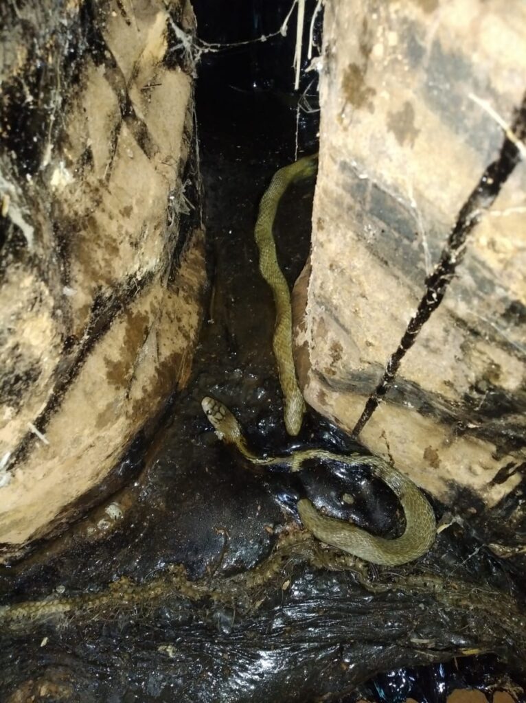 ಪುತ್ತೂರು: ಡಾಂಬರ್ ನಲ್ಲಿ ಸಿಲುಕಿದ ನಾಗರಹಾವಿನ ರಕ್ಷಣೆ