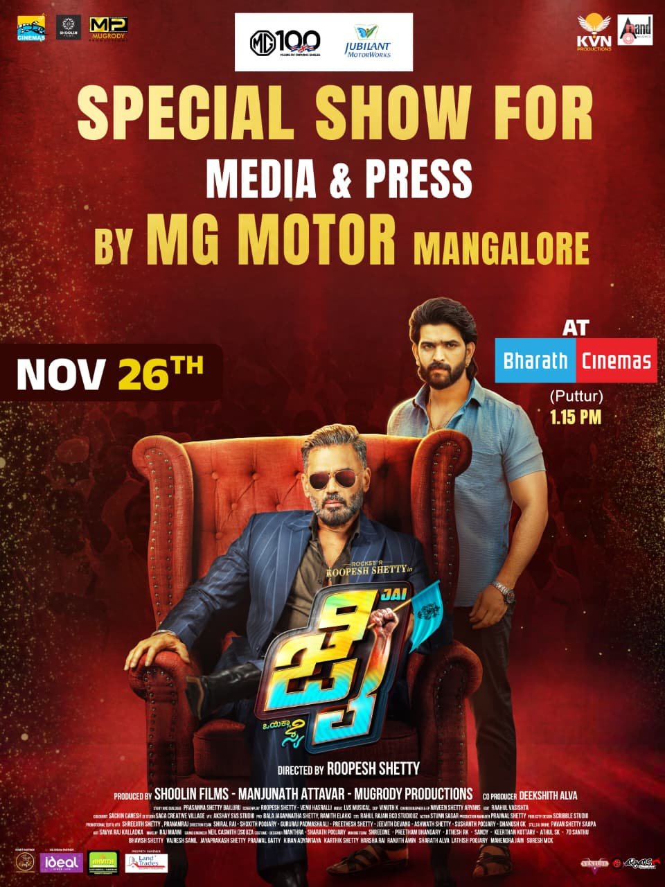 ಈ ವಿಶೇಷ ಶೋಗೆ MG Motors Mangalore ಪ್ರಾಯೋಜಕತ್ವ ನೀಡಿದ್ದು, ಕಾರ್ಯಕ್ರಮದ ಎಲ್ಲಾ ವ್ಯವಸ್ಥೆಯನ್ನು ಜೈ ಚಿತ್ರತಂಡವೇ ನಿರ್ವಹಿಸುತ್ತಿದೆ. ಬಂಟ್ವಾಳ, ವಿಟ್ಲ, ಬೆಳ್ತಂಗಡಿ, ಪುತ್ತೂರು, ಸುಳ್ಯ, ಕಡಬ ಮತ್ತು ಮಡಿಕೇರಿ ಸೇರಿದಂತೆ ಹಲವಾರು ಪ್ರದೇಶಗಳಿಂದ ಆಗಮಿಸುವ ಮಾಧ್ಯಮ ಮತ್ತು ಪತ್ರಿಕಾ ಸ್ನೇಹಿತರಿಗಾಗಿ ಮಾತ್ರ ಈ ಪ್ರದರ್ಶನವನ್ನು ಮೀಸಲಿಡಲಾಗಿದೆ. ಪತ್ರಕರ್ತರ ಸೇವೆಯನ್ನು ಗೌರವಿಸುವ ಉದ್ದೇಶದಿಂದ, ಮಾಧ್ಯಮ ಪ್ರತಿನಿಧಿಗಳು ಹಾಗೂ ಅವರ ಕುಟುಂಬಕ್ಕೆ ಉಚಿತ ಪ್ರವೇಶ ವ್ಯವಸ್ಥೆ ಕಲ್ಪಿಸಲಾಗಿದೆ.