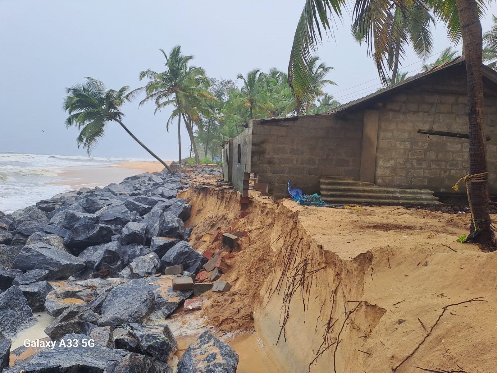 ಮೀನುಗಾರರ ಬಹುದಿನಗಳ ಮನವಿಗೆ ಪೂರಕವಾಗಿ ಸ್ಪಂದನೆ ದೊರಕದ ಹಿನ್ನಲೆಯಲ್ಲಿ, ಇದೀಗ ಮೀನುಗಾರಿಕಾ ಸಲಕರಣಾ ಕೊಠಡಿ ಸಹಿತ ಮೂರು ತೆಂಗಿನ ಮರಗಳು ಕಡಲ ಒಡಲು ಸೇರಿದ್ದು, ಮೀನುಗಾರರು ಆಕ್ರೋಶ ವ್ಯಕ್ತ ಪಡಿಸಿದ್ದಾರೆ.