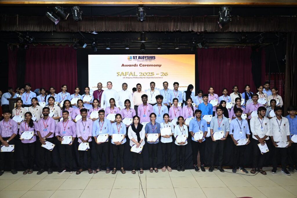 Today, St Aloysius University hosts more than 8,600 students across diverse disciplines and is a distinguished member of the Xavier Board, Jesuit Higher Education Association of South Asia (JHEASA), All India Association for Christian Higher Education (AIACHE), International Association of Jesuit Universities (IAJU), International Association of Jesuit Business Schools (IAJBS), Xavier Association of Management Institutes (XAMI), and the International Association of Jesuit Engineering and Science Schools (IAJES). Managed by the Mangalore Jesuit Educational Society (MJES), the University is a leading Jesuit institution in the region, consistently recognized among India’s top management universities for its excellence in higher education at the state, national, and international levels, holding esteemed accreditations and recognitions from NAAC (National Assessment and Accreditation Council), NIRF (National Institutional Ranking Framework), ICT Academy, AICTE (All India Council for Technical Education), AIU (Association of Indian Universities), IIC (Institution’s Innovation Council), and BCI (Bar Council of India), reflecting its commitment to academic distinction, innovation, and holistic development.