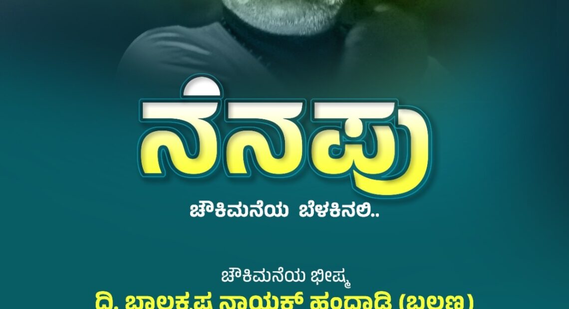 ಚೌಕಿಮನೆಯ ಭೀಷ್ಮ ದಿ.ಬಾಲಕೃಷ್ಣ ನಾಯಕ್ ಹಂದಾಡಿಯವರ ಪ್ರಥಮ ಸಂಸ್ಮರಣೆ, ಪುತ್ಥಳಿ ಅನಾವರಣ , ಸನ್ಮಾನ ಕಾರ್ಯಕ್ರಮ ನೆನಪು ಚೌಕಿಮನೆಯ ಬೆಳಕಿನಲಿ ಆ.9ರಂದು ಸಂಜೆ 3.30ಕ್ಕೆ ಬ್ರಹ್ಮಾವರ ಬಂಟರ ಭವನದಲ್ಲಿ ಕಾರ್ಯಕ್ರಮವು ನಡೆಯಲಿದೆ. ಕಾರ್ಯಕ್ರಮದಲ್ಲಿ ರಾಜೇಶ್ ಶ್ಯಾನುಭೋಗ್ ಅವರಿಂದ ಭಾವನಮನ ನಡೆಯಲಿದೆ. ಕಾರ್ಯಕ್ರಮದಲ್ಲಿ ಹಿರಿಯ ಯಕ್ಷಗಾನ ಕಲಾವಿದರಾದ ಇಂದ್ರಾಳಿ