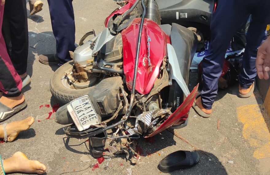 ಸ್ಕೂಟರ್ ಗೆ ಟ್ಯಾಂಕರ್ ಡಿಕ್ಕಿ ಹೊಡೆದ ಪರಿಣಾಮ ದಂಪತಿಗಳು ಸ್ಧಳದಲ್ಲಿಯೇ ಸಾವನ್ನಪ್ಪಿದ ಘಟನೆ ರಾಷ್ಟ್ರೀಯ ಹೆದ್ದಾರಿ 66 ರ ಮೂಲ್ಕಿ ಸಮೀಪದ ಬಪ್ಪನಾಡು ಸೇತುವೆ ಬಳಿ ನಡೆದಿದೆ. ಮೃತ ದಂಪತಿಗಳನ್ನು ತೀರ್ಥಹಳ್ಳಿ ಕೋಳಿ ಕಾಲು ಗುಡ್ಡೆ ನಿವಾಸಿಗಳಾದ ಅಕ್ಬರ್ ಭಾಷಾ (61) ವರ್ಷ ಹಾಗೂ ಖತಿಜಾ ಬಿ (46 ವರ್ಷ ) ಎಂದು ಗುರುತಿಸಲಾಗಿದೆ. ಮಂಗಳೂರಿನ ಪಾಸ್ಪೋರ್ಟ್ ಕಛೇರಿಗೆ ಪಾಸ್ಪೋರ್ಟ್ ಮಾಡಿಸಲೆಂದು ಮೃತ ದಂಪತಿಗಳು ಮುಂಜಾನೆ ತಮ್ಮ ಸ್ಕೂಟರಿನಲ್ಲಿ