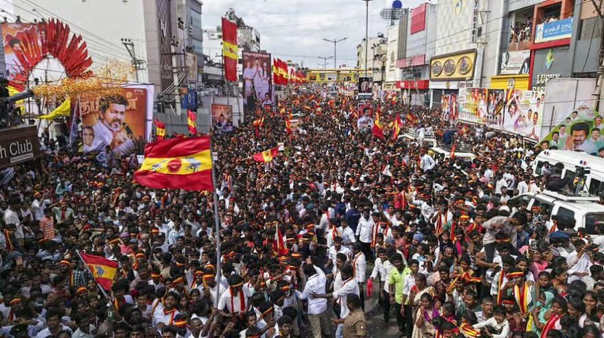 ಚೆನ್ನೈ: ಕರೂರಿನಲ್ಲಿ ತಮಿಳಿಗ ವೆಟ್ರಿ ಕಳಗಂ (ಟಿವಿಕೆ) ಪಕ್ಷದ ರ್ಯಾಲಿಯ ವೇಳೆ ಸಂಭವಿಸಿದ ಕಾಲ್ತುಳಿತದಲ್ಲಿ ಮೃತಪಟ್ಟವರ ಸಂಖ್ಯೆ 39ಕ್ಕೆ ಏರಿಕೆಯಾಗಿದೆ. ಮೃತರಲ್ಲಿ 16 ಮಹಿಳೆಯರು, 8 ಮಕ್ಕಳಿದ್ದಾರೆ. ಮುಂಬರುವ ವಿಧಾನಸಭಾ ಚುನಾವಣೆಗೆ ಪ್ರಚಾರ ಆರಂಭಿಸಿರುವ ಟಿವಿಕೆ ಮುಖ್ಯಸ್ಥ, ನಟ ವಿಜಯ್ ಕರೂರಿನಲ್ಲಿ ಶನಿವಾರ(ಸೆ.27) ಬೃಹತ್ ರ್ಯಾಲಿ ಆಯೋಜಿಸಿದ್ದರು. ನೆಚ್ಚಿನ ನಟನನ್ನು ನೋಡಲು ಅಪಾರ ಸಂಖ್ಯೆಯಲ್ಲಿ ಜನ ಸೇರಿದ್ದರಿಂದ ಕಾಲ್ತುಳಿತ