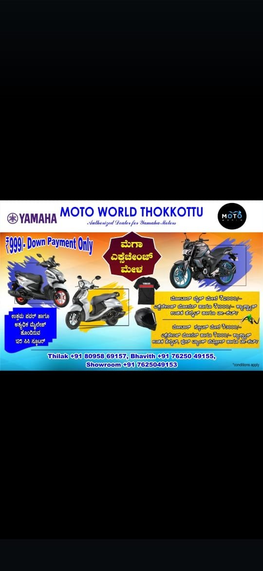 ನಗರದ ತೊಕ್ಕೊಟ್ಟುವಿನಲ್ಲಿರುವ ಯಮಹಾ ಮೋಟೋ ವರ್ಲ್ಡ್ನಲ್ಲಿ ಮೆಘಾ ಎಕ್ಸ್ಚೇಂಜ್ ಮೇಳವನ್ನು ಆಯೋಜಿಸಲಾಗಿದೆ.