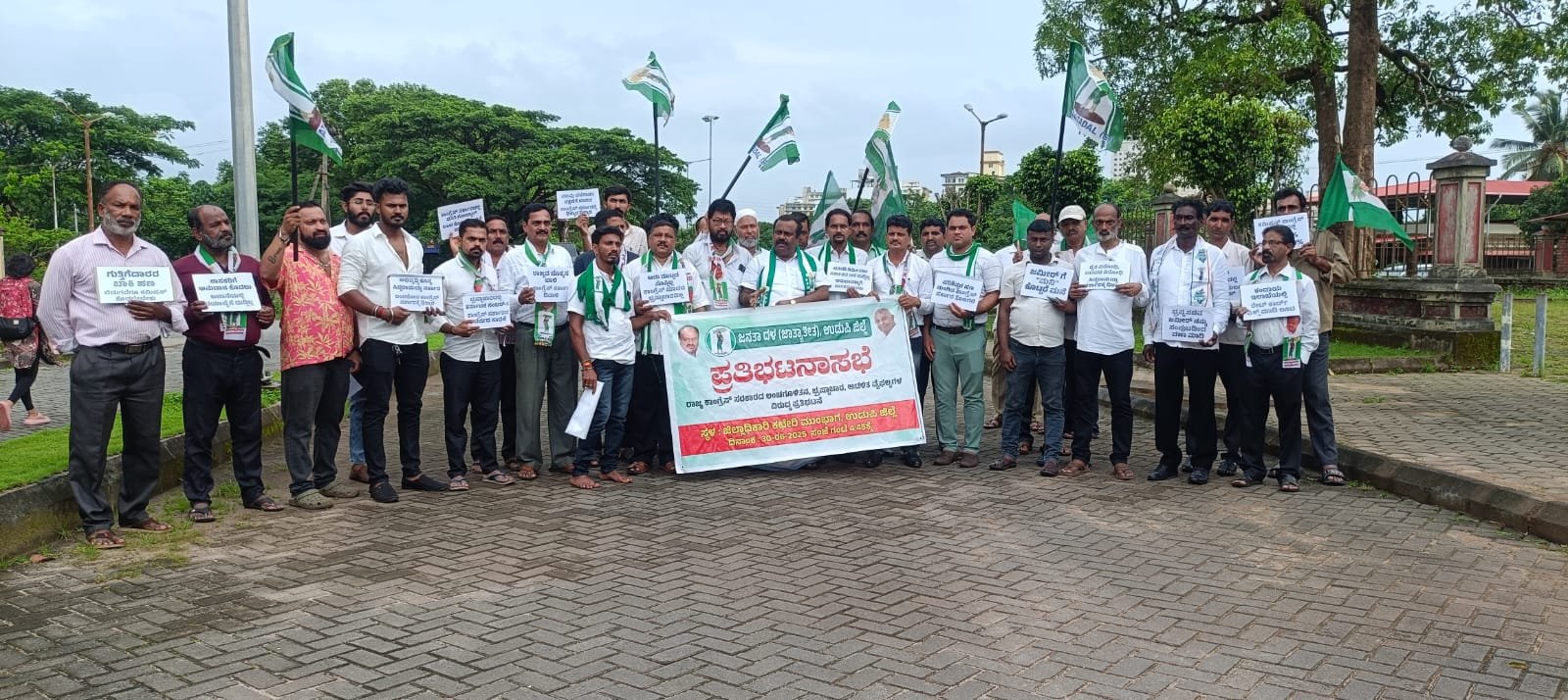 ಅತೀವ ಭ್ರಷ್ಟಾಚಾರ ಆಡಳಿತ ವೈಫಲ್ಯದಲ್ಲಿ ತೊಡಗಿರುವ ರಾಜ್ಯ ಕಾಂಗ್ರೆಸ್ ಸರ್ಕಾರವನ್ನು ತರಾಟೆಗೆ ತೆಗೆದುಕೊಂಡು ಸೂಕ್ತ ರೀತಿಯಲ್ಲಿ ಸಂವಿಧಾನ ಬದ್ಧವಾಗಿ ಆಡಳಿತ ನಡೆಸಲು ನಿರ್ದೇಶನ ನೀಡಬೇಕೆಂದು ಉಡುಪಿ ಜಿಲ್ಲಾ ಜೆಡಿಎಸ್ ವತಿಯಿಂದ ಜಿಲ್ಲಾಧ್ಯಕ್ಷರಾದ ಯೋಗೀಶ್ ವಿ. ಶೆಟ್ಟಿಯವರ ನೇತೃತ್ವದಲ್ಲಿ ಜಿಲ್ಲಾಧಿಕಾರಿ ಕಚೇರಿ ಮುಂದೆ ಪ್ರತಿಭಟನೆ ನಡೆಸಿ ಅಗ್ರಹಿಸಿ ತದನಂತರ ಜಿಲ್ಲಾಧಿಕಾರಿಗಳಿಗೆ ಮನವಿಯನ್ನು ನೀಡಲಾಯಿತು ಪ್ರಕಟನೆಯ ಮೂಲಕ ಮಾಧ್ಯಮಕ್ಕೆ ತಿಳಿಸಿದ್ದಾರೆ.