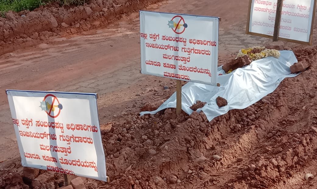 ವಿಟ್ಲ: ವಿಟ್ಲ-ಕನ್ಯಾನ ರಸ್ತೆಯೂ ತೀರಾ ಹದಗೆಟ್ಟು ಹೋಗಿದ್ದು, ಇದರಿಂದ ರೊಚ್ಚಿಗೆದ್ದ ಸಾರ್ವಜನಿಕರು ಶವದ ಆಕೃತಿ ರಚಿಸಿ ರಸ್ತೆಯಲ್ಲಿ ಇಟ್ಟು ಆಕ್ರೋಶ ಹೊರಹಾಕಿದ್ದಾರೆ.