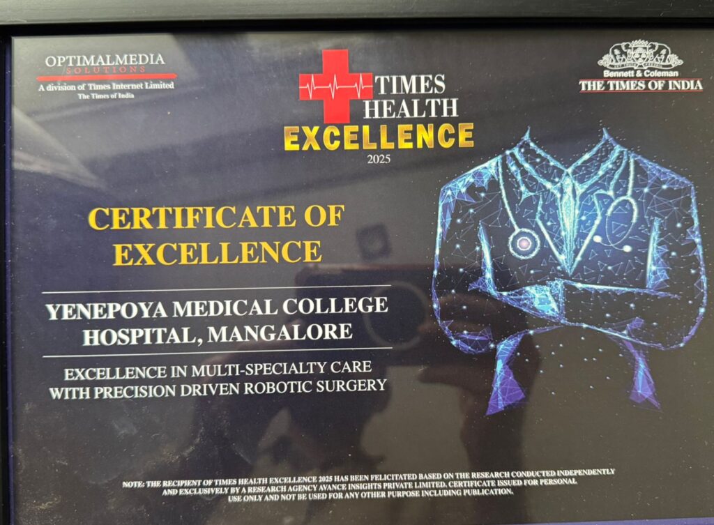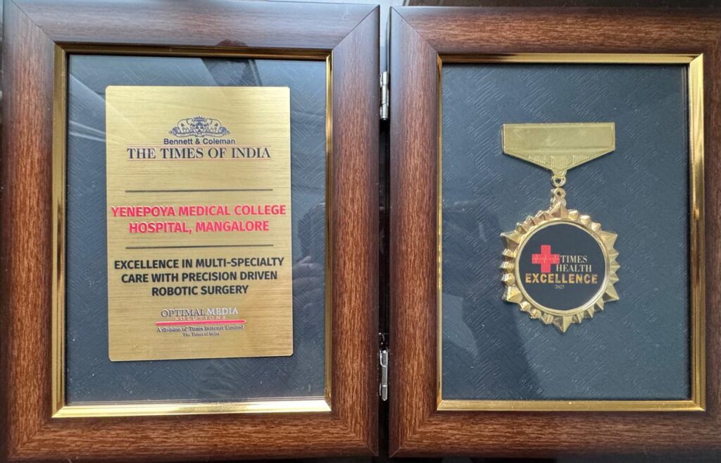 Please find attached the press release. Yenepoya Medical College Hospital has been honoured with the Award for Excellence in Multispecialty Care with Precision-Driven Robotic Surgery at the Times Health Excellence 2025. The award was received by Dr. M. Vijay Kumar, Hon. Vice Chancellor, Yenepoya (Deemed to be University), at the ceremony held on December 4, 2025, at the JW Marriott Hotel, Bengaluru. Kindly do the needful.